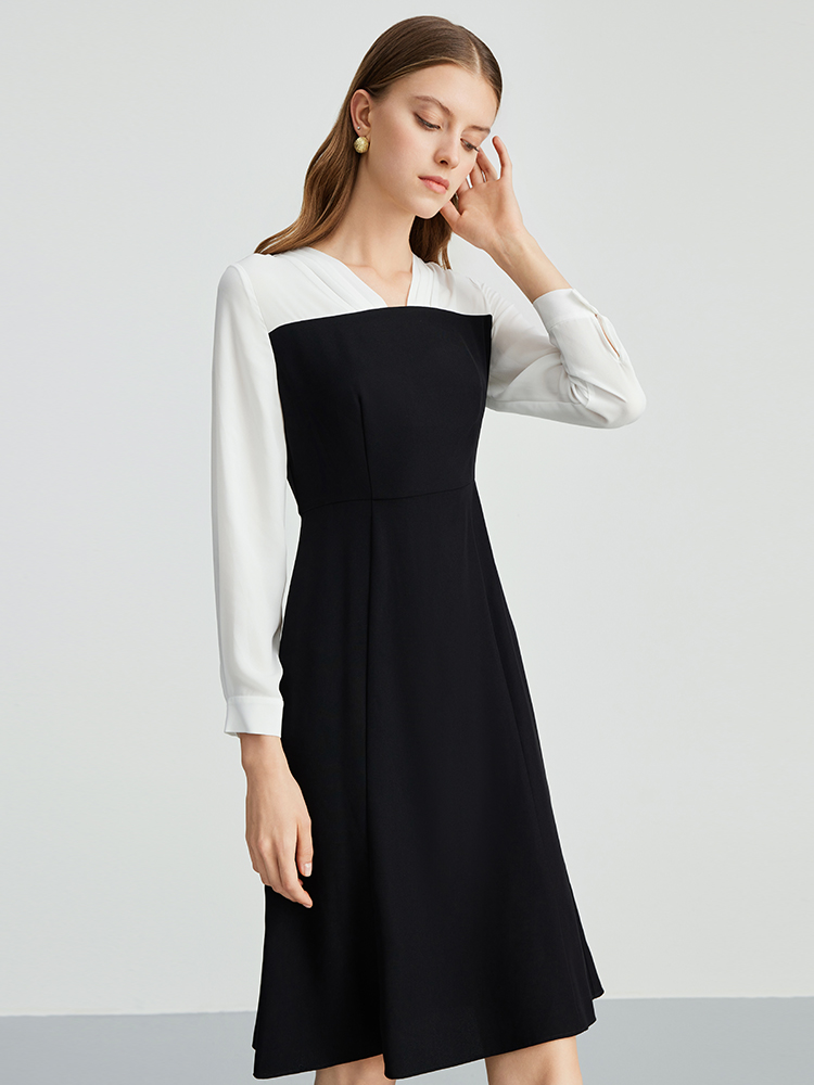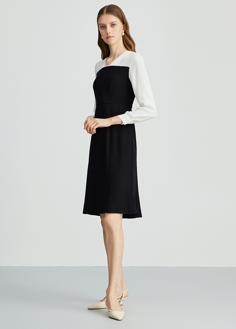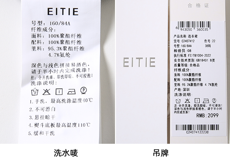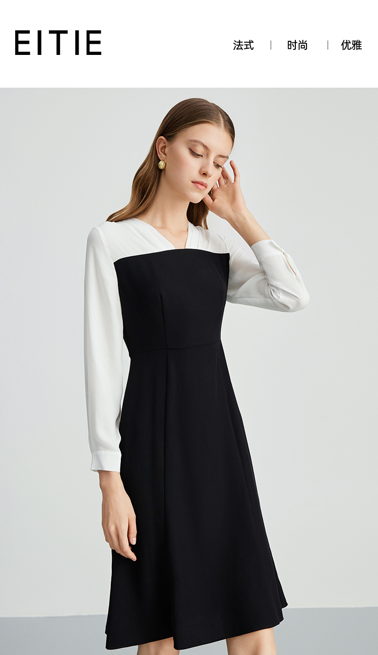 EITIE爱特爱夏季新款洋气西装领收腰显瘦灯笼袖连衣裙女B2107710