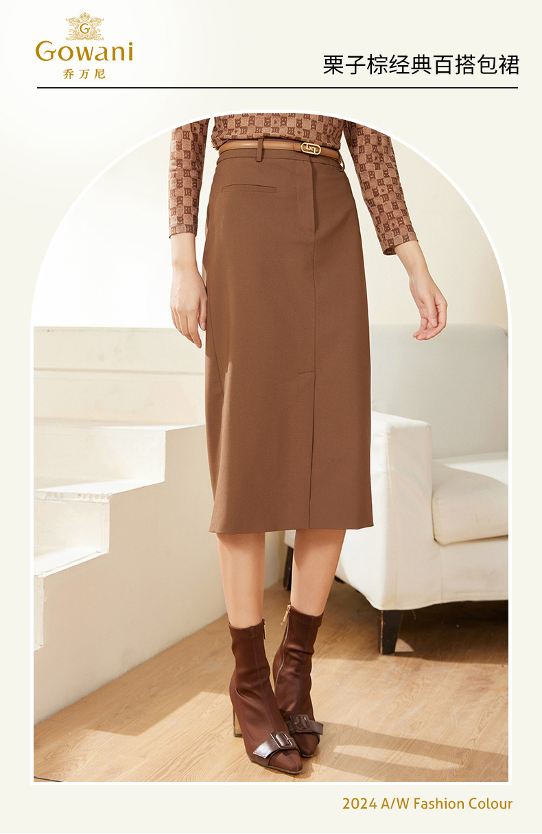 乔万尼半身裙长款新款秋冬复古设计棕色EM3D391