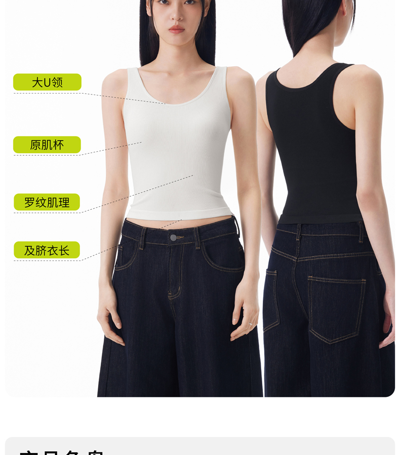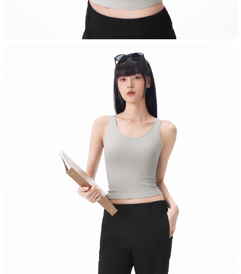 半练U领罗纹背心TA072 女夏外穿运动美背带胸垫内搭白色纯色吊带上衣