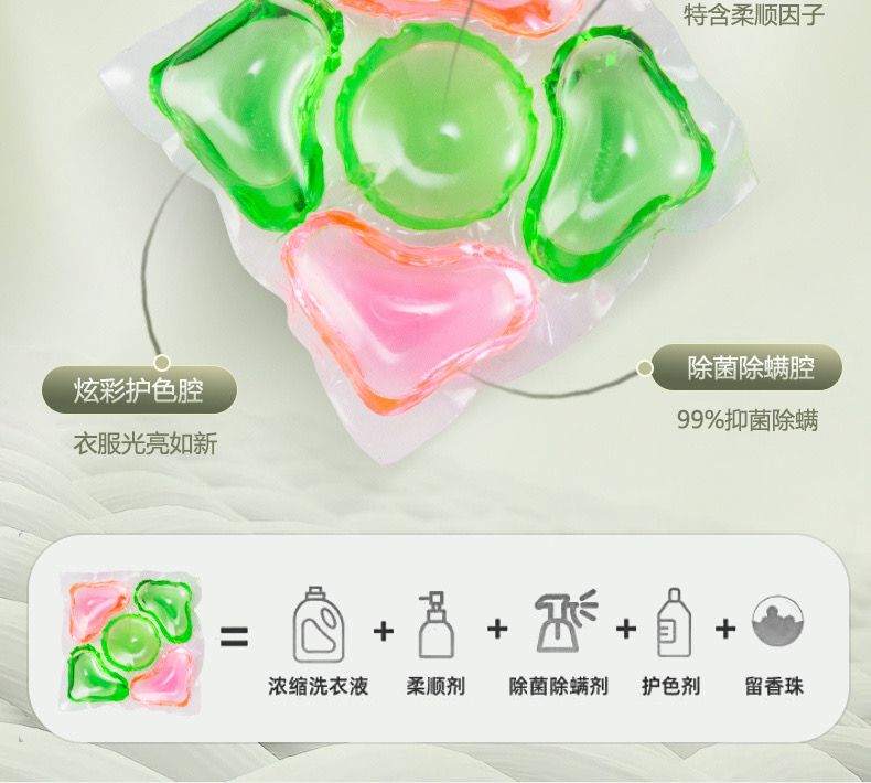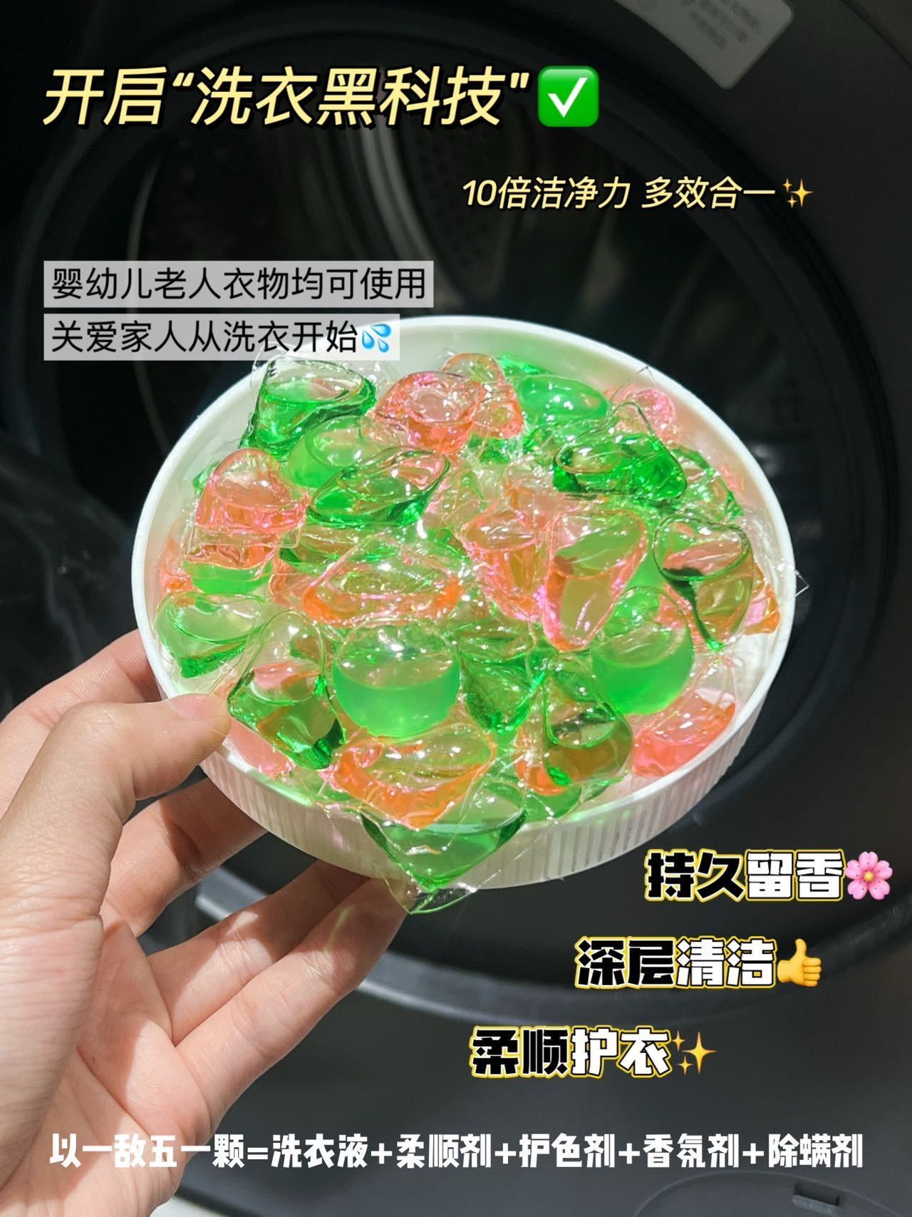 一颗=浓缩洗衣液+柔顺剂+除菌除螨剂+护色剂+留香珠多元除菌除螨洁净因子科学复配FMEE+APG绿色洁净表活技术+顽固血渍剥脱技术去污增效技术🐮酵素去污✅固色护色✅柔顺护衣 ✅抑菌除螨持久留香✅无荧光增白剂✅无磷✅无含氯漂白剂✅无酒精把衣服挂在阳台上一整个屋子🏡飘满栀子花香味道🌷