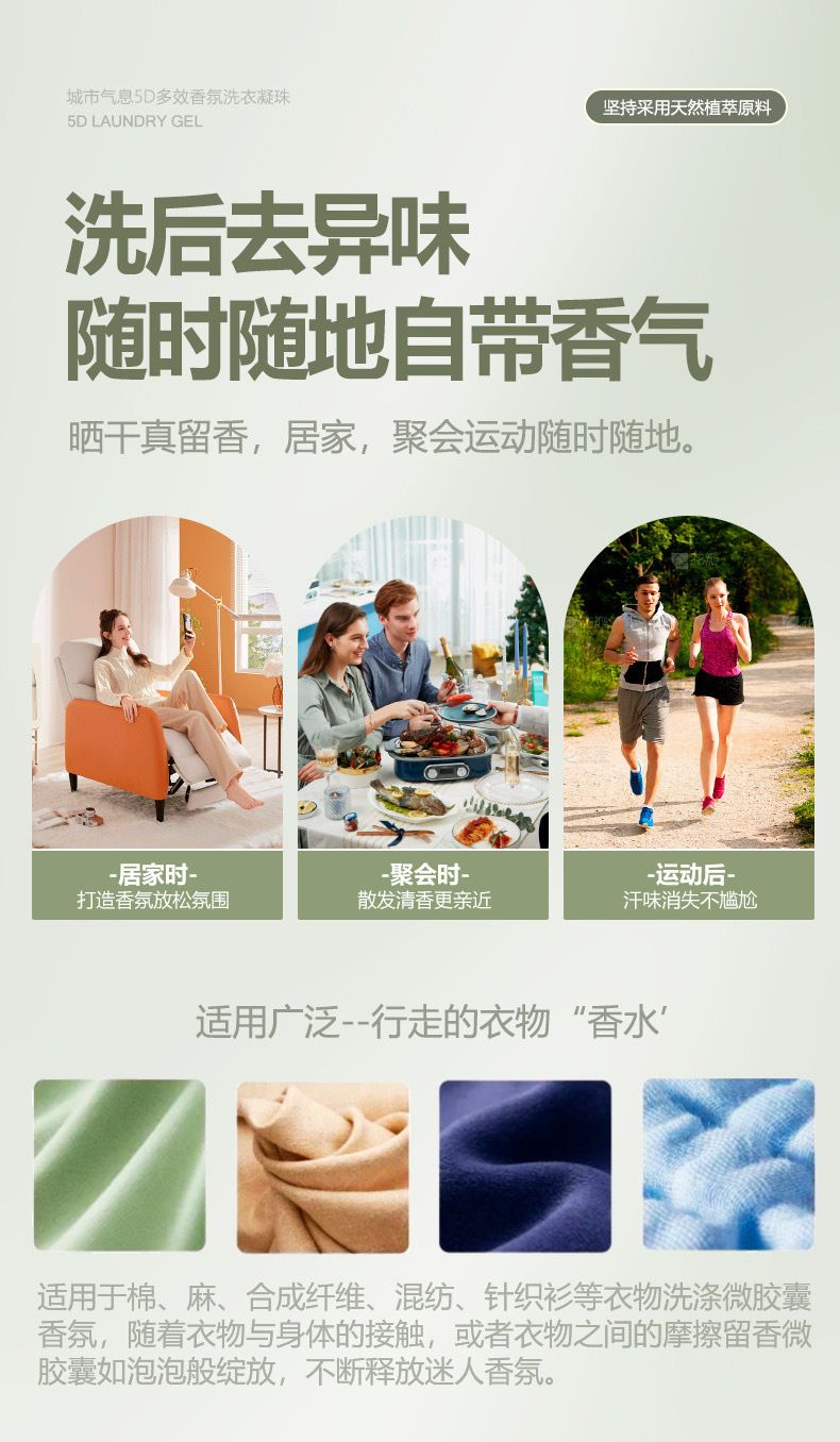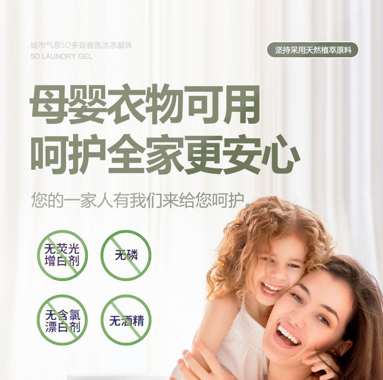 去污新配方,深层洁净、相较于传统的洗衣粉、洗衣液等产品,洗衣凝珠有定量、浓缩、便携、多效合一等优点