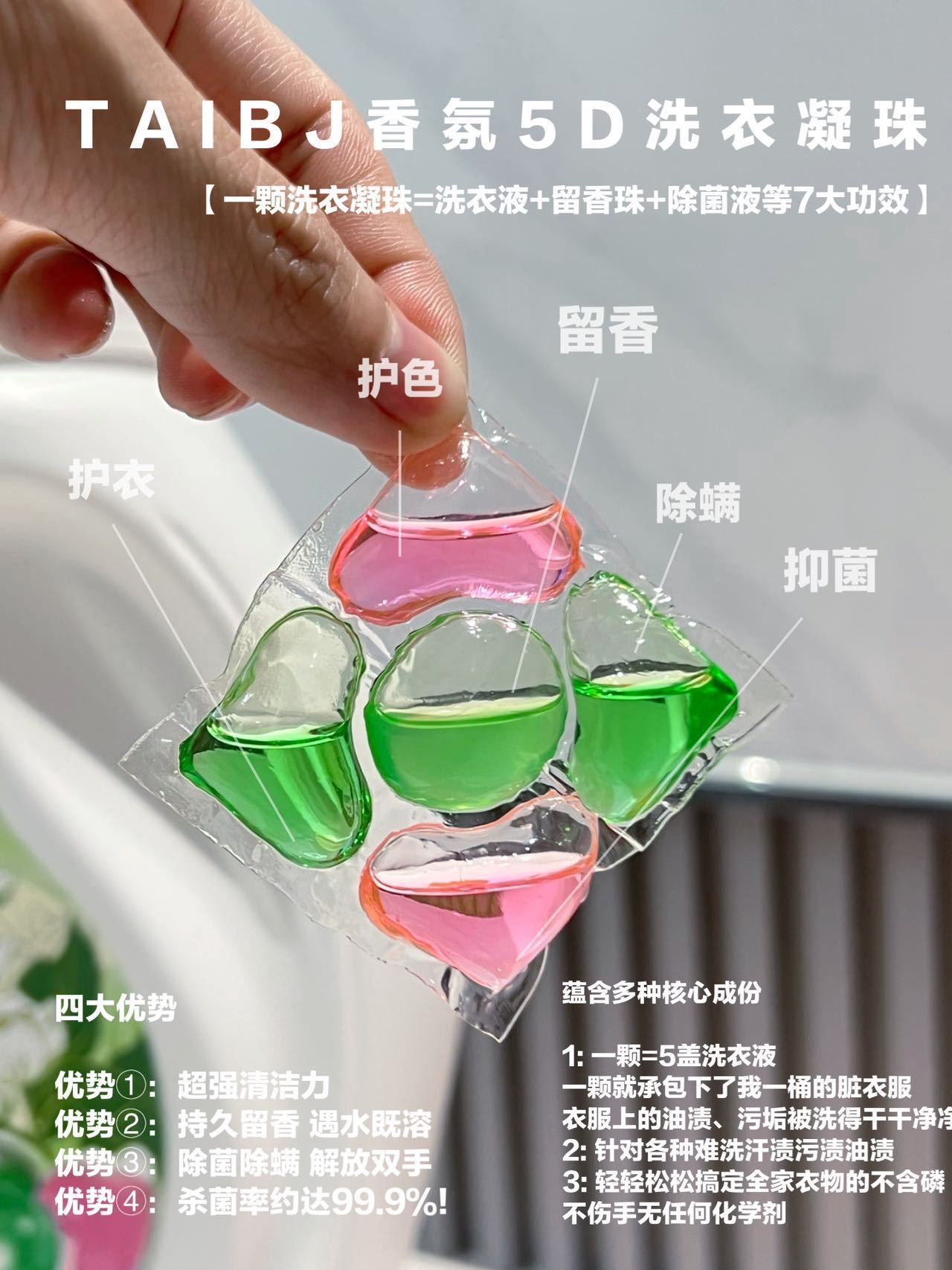 脏衣服克星💔「TAIBJ-5D炫彩栀子花香氛洗衣凝珠」🧺法国雅顿实验室提供技术与配方支持一颗=浓缩洗衣液+柔顺剂+除菌除螨剂+护色剂+留香珠行走的香水🤤酵素去污💥抑菌除