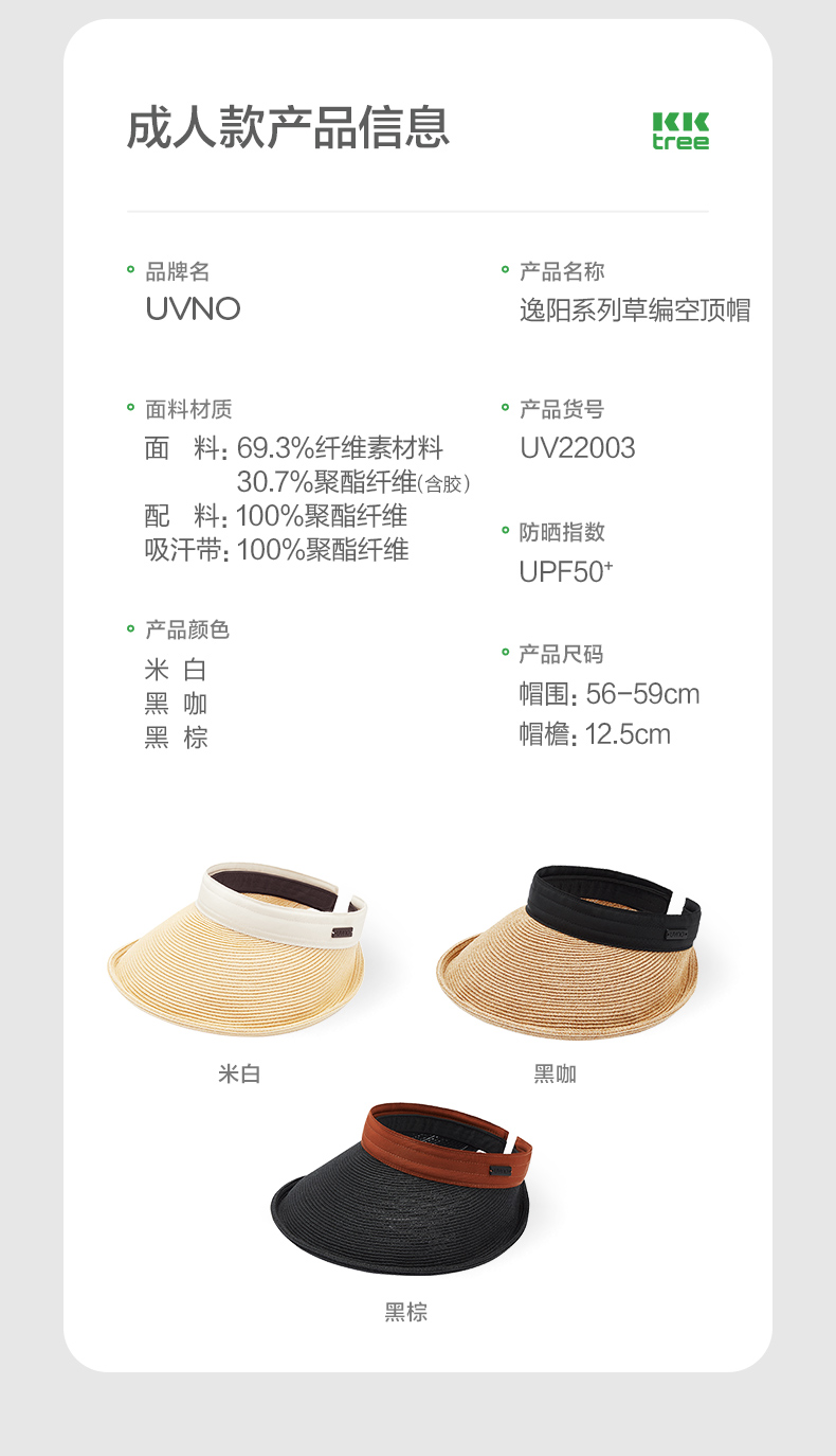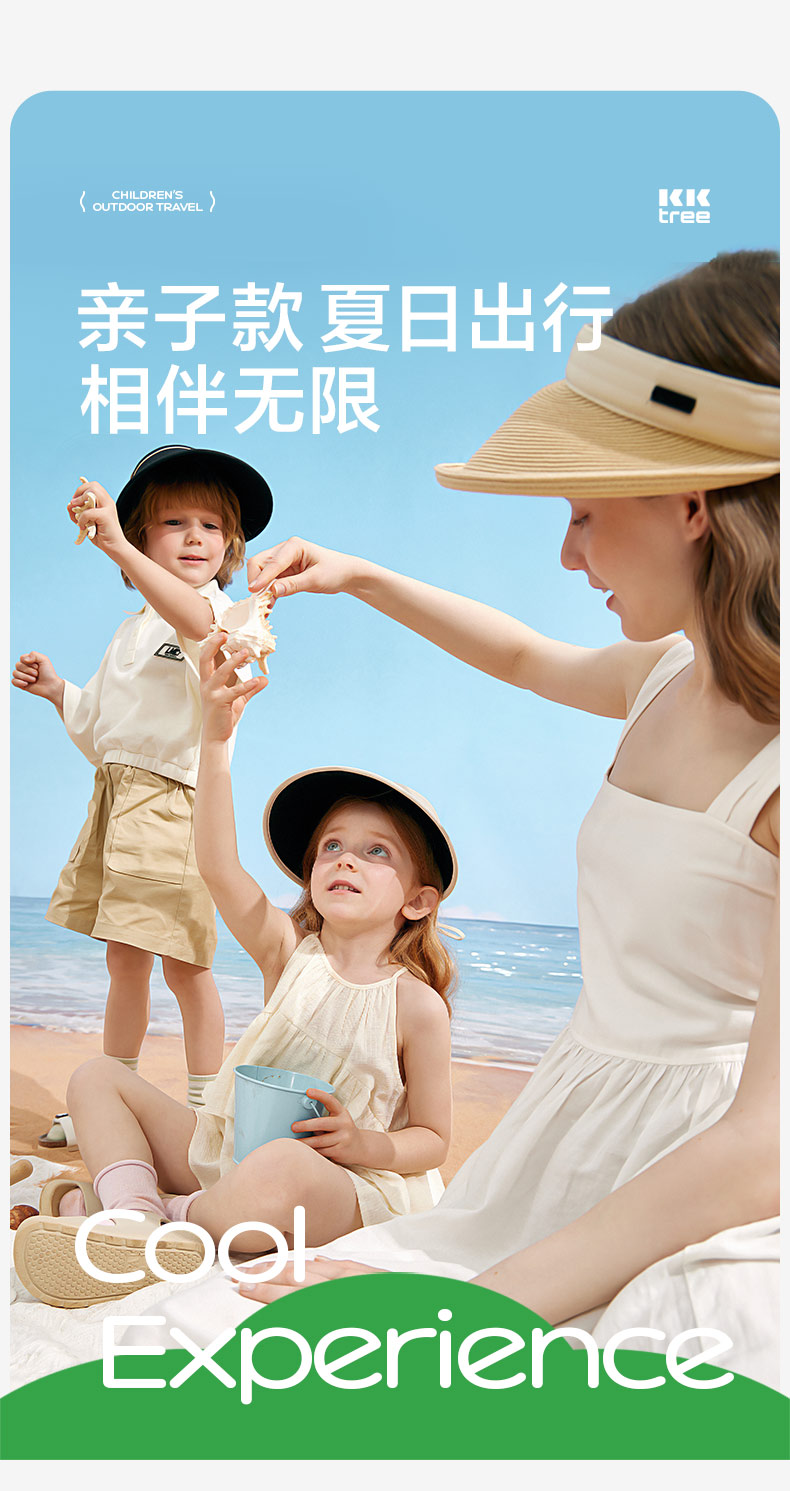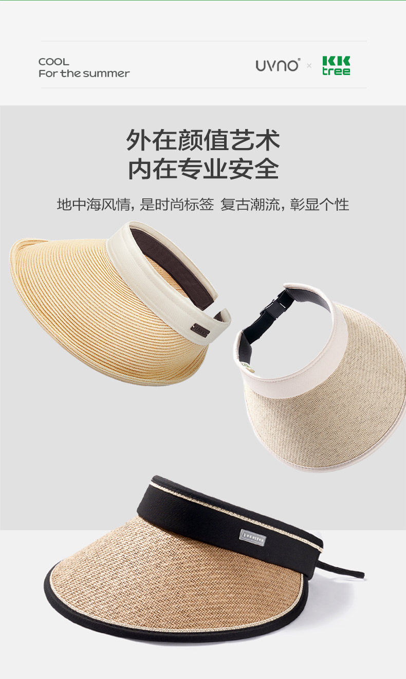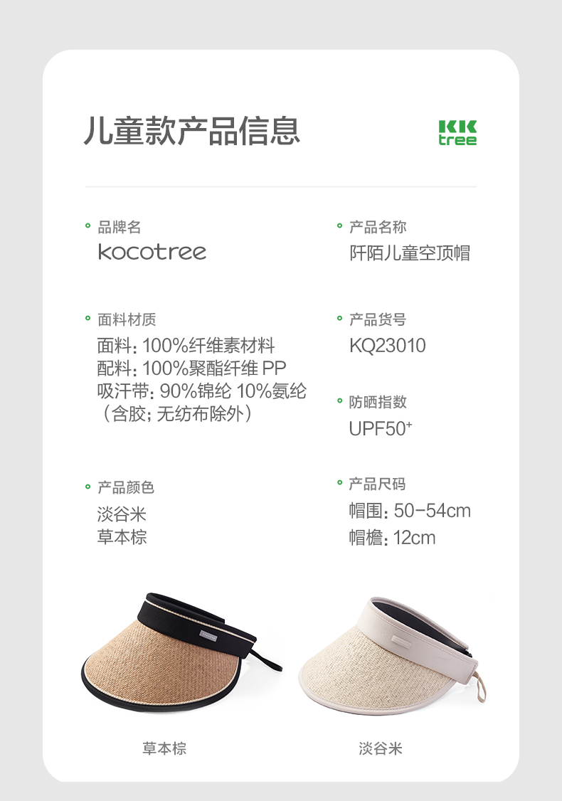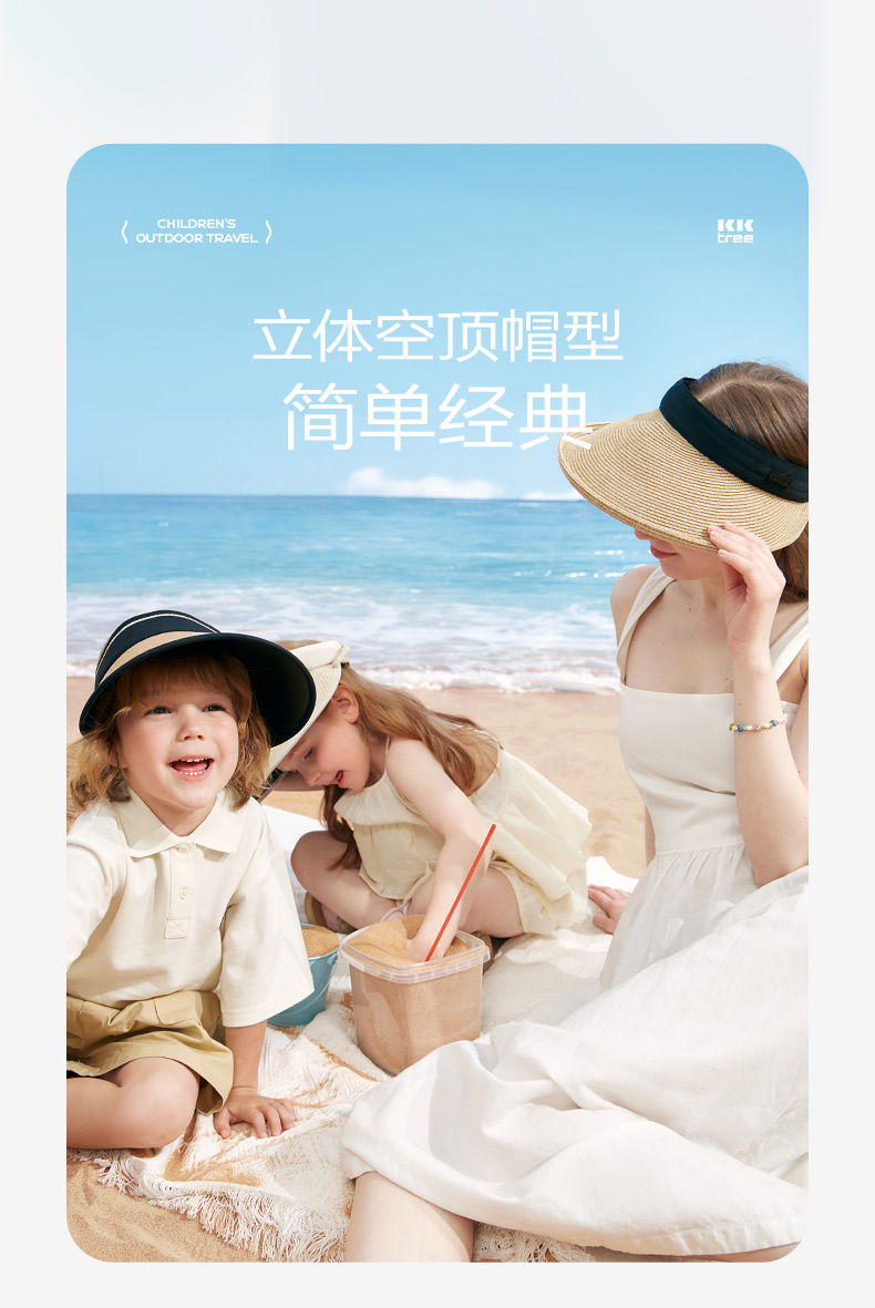 KK树亲子防晒草帽男童女孩防紫外线儿童空顶太阳帽宝宝户外遮阳夏