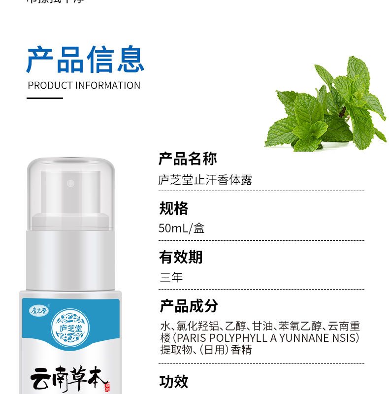 【一喷净味 男女通用】庐芝堂云南草本止汗香体露(2/4盒)