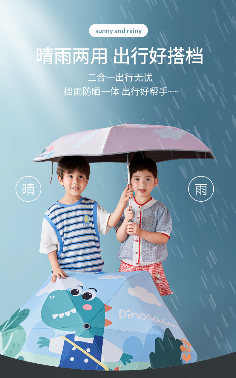 KK树儿童雨伞男童女孩小学生晴雨两用伞女童幼儿园宝宝自动折叠伞圆角