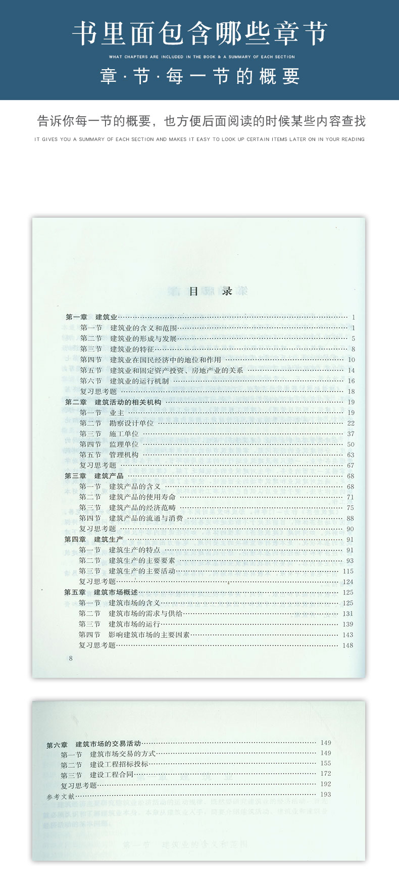 本书以社会主义市场经济理论为基础,根据建筑市场的运行规则,围绕建筑产品的生产、交换、管理,结合我国建筑业的实际情况,全面阐述建筑经济的基本理论和知识。主要内容包括:建筑业、建筑活动的相关机构、建筑产品、建筑生产、建筑市场概述、建筑市场的交易活动等。