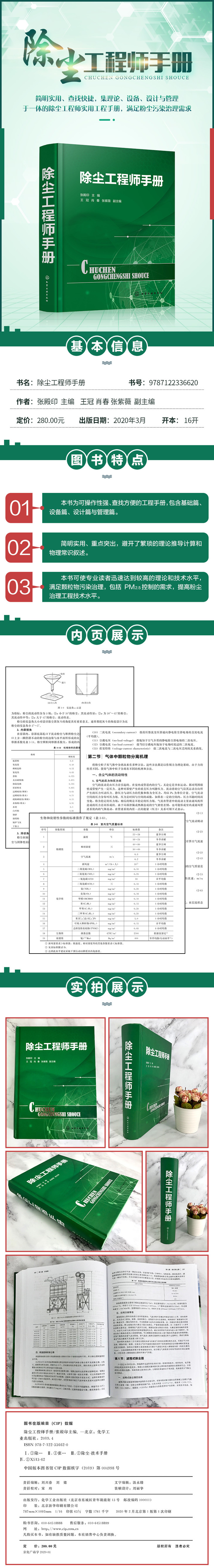 (1)内容全面。书中为除尘工程师提供从研发制造、工程设计、安装施工到运营管理等各方面的技术知识和细节技巧,从而丰富除尘工程师已有知识。