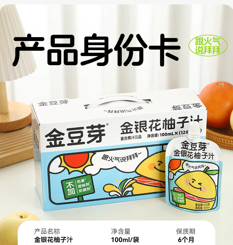 【清爽解腻!开胃助消化】金豆芽金银花柚子汁饮料儿童果味饮品便携独立装100g*13袋礼盒装。xb