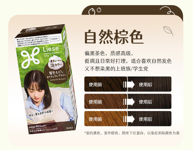 【跨境】花王Liese泡沫染发剂自然棕色115ml*2(独立包装)