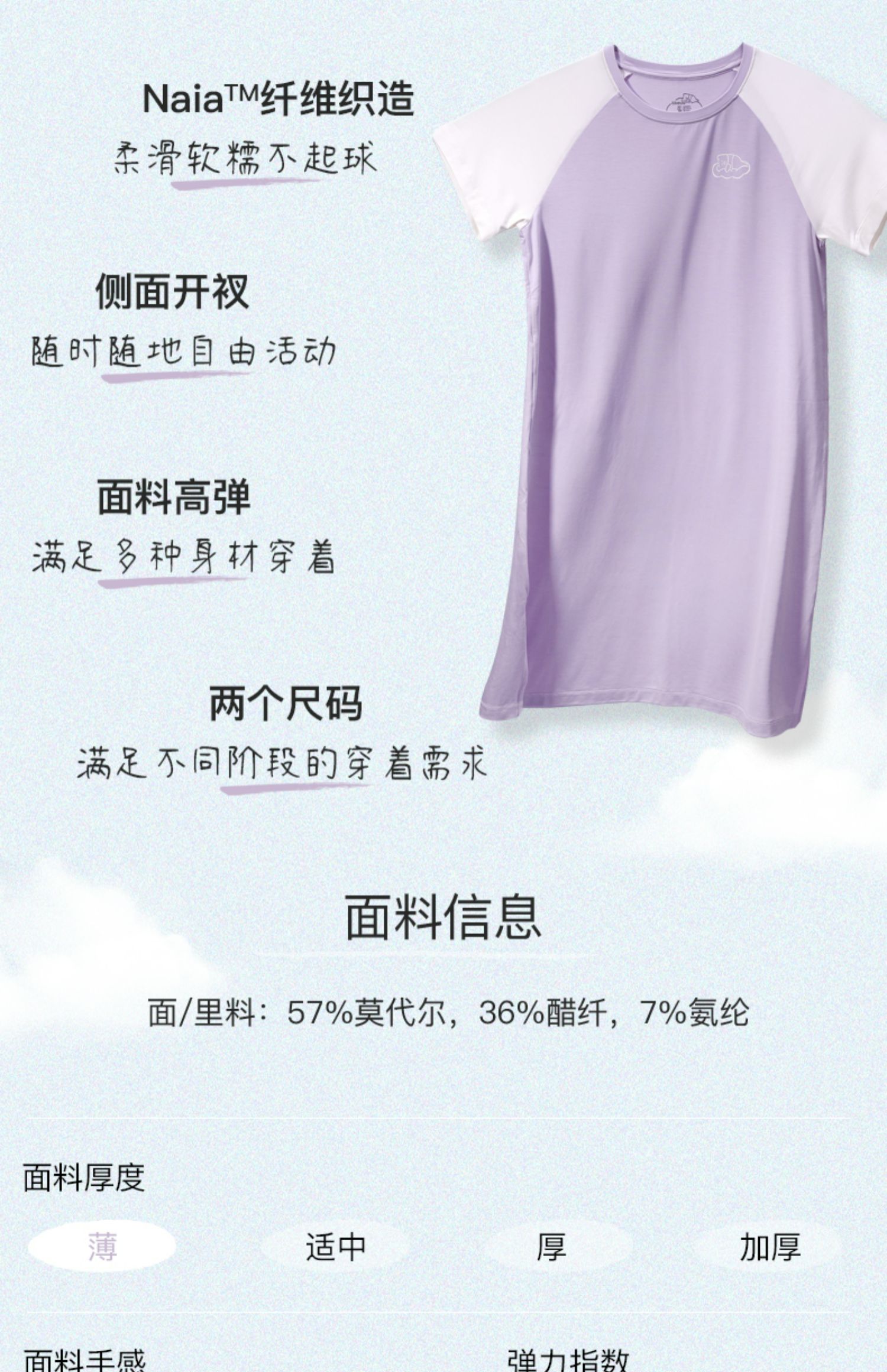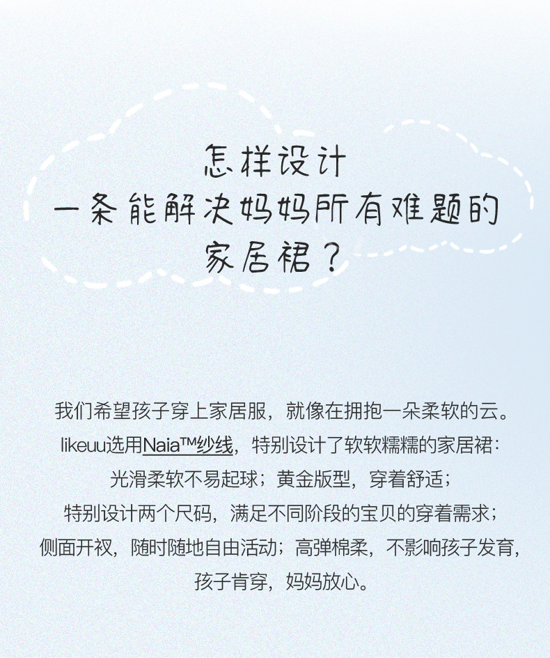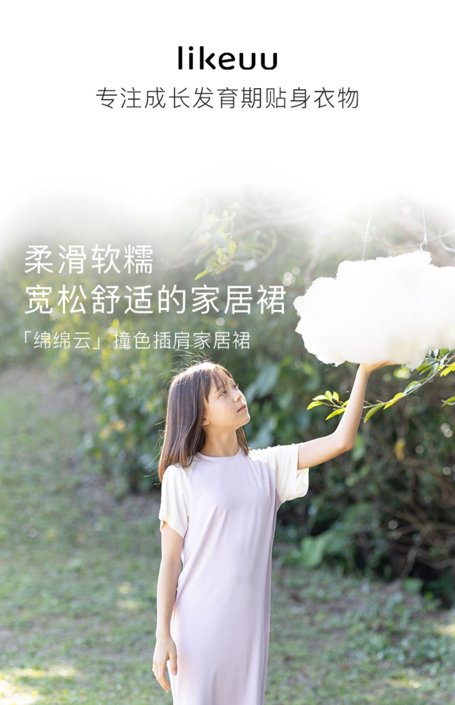 【低至6折】likeuu女童睡衣宽松绵绵云轻薄可外穿中长款家居裙