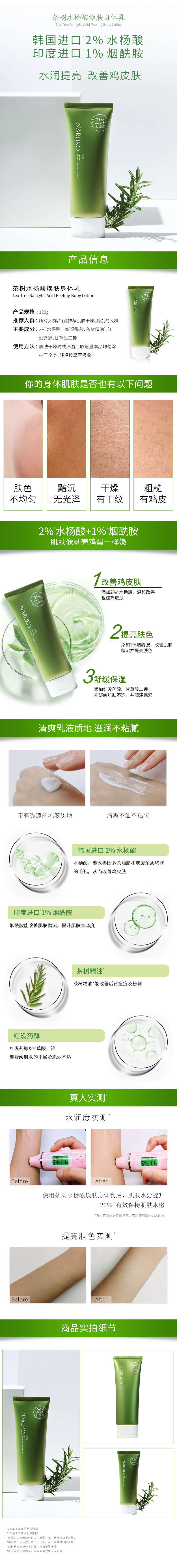 【168元任选3件】牛尔 Naruko 茶树水杨酸焕肤身体乳120g 提亮肤色 改善鸡皮肤