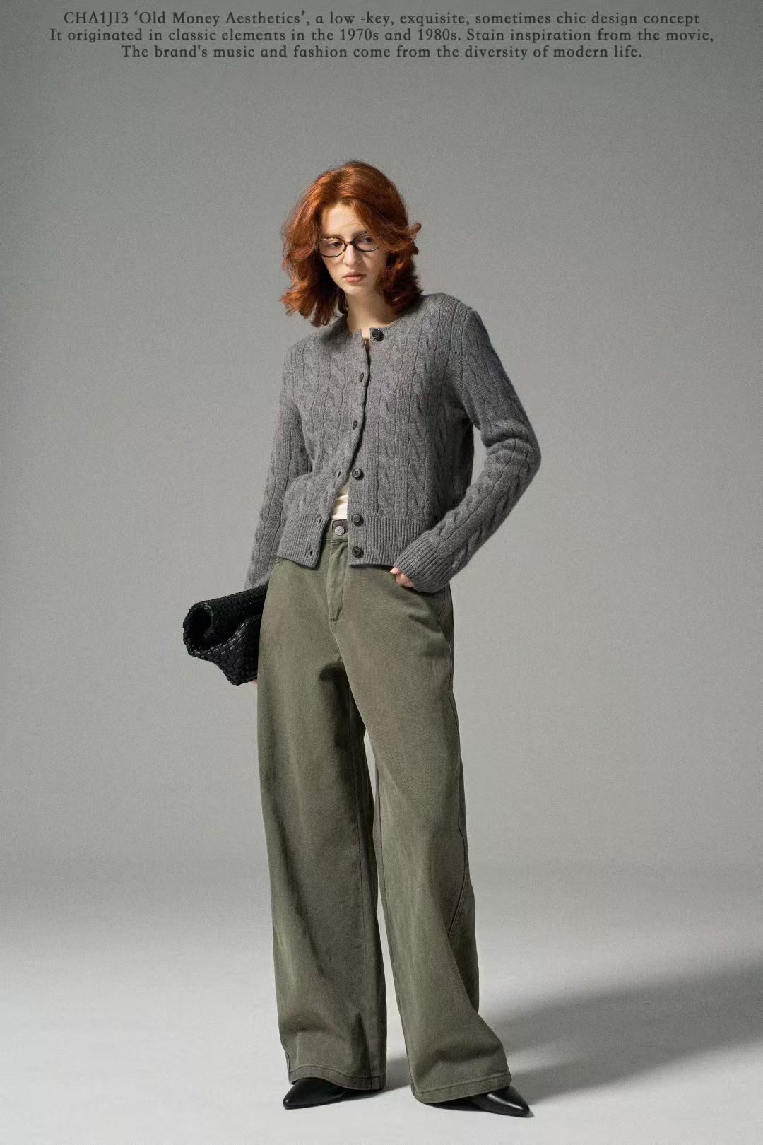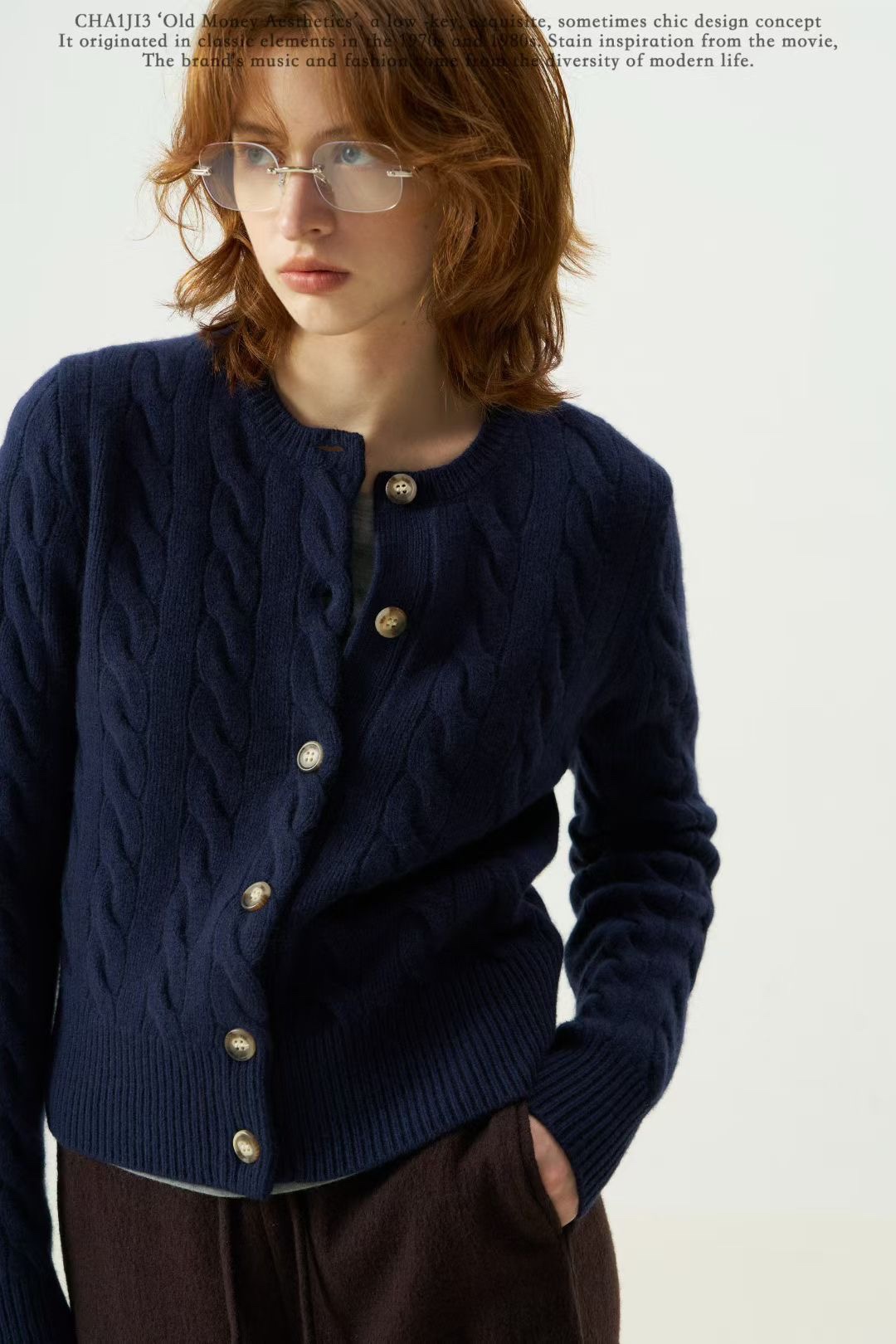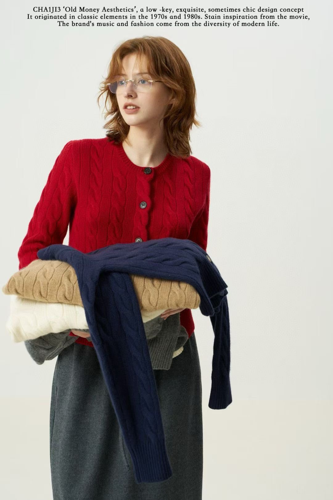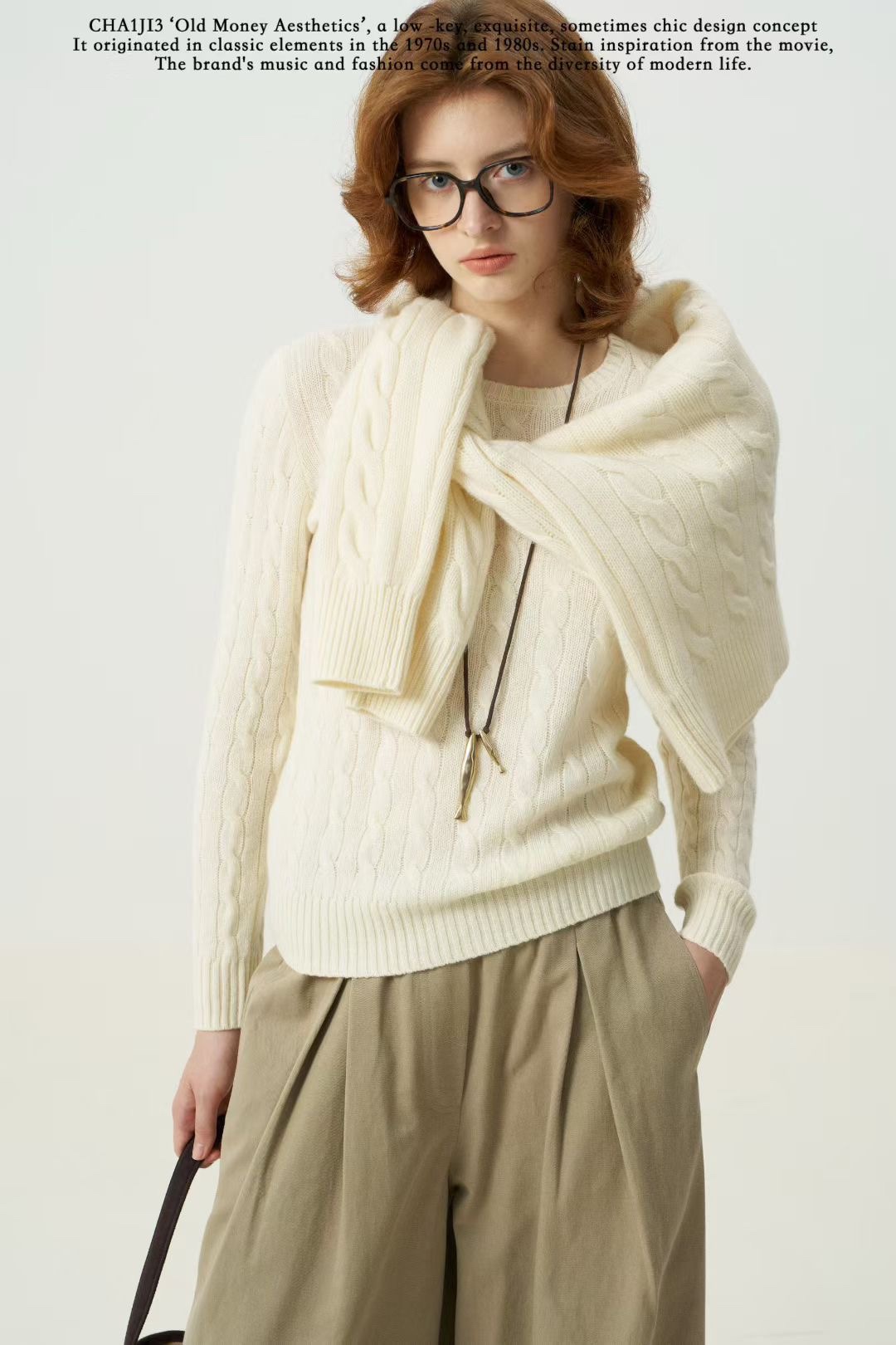 【à perles】羊毛复古绞花麦穗绣圆领和开衫两个版本