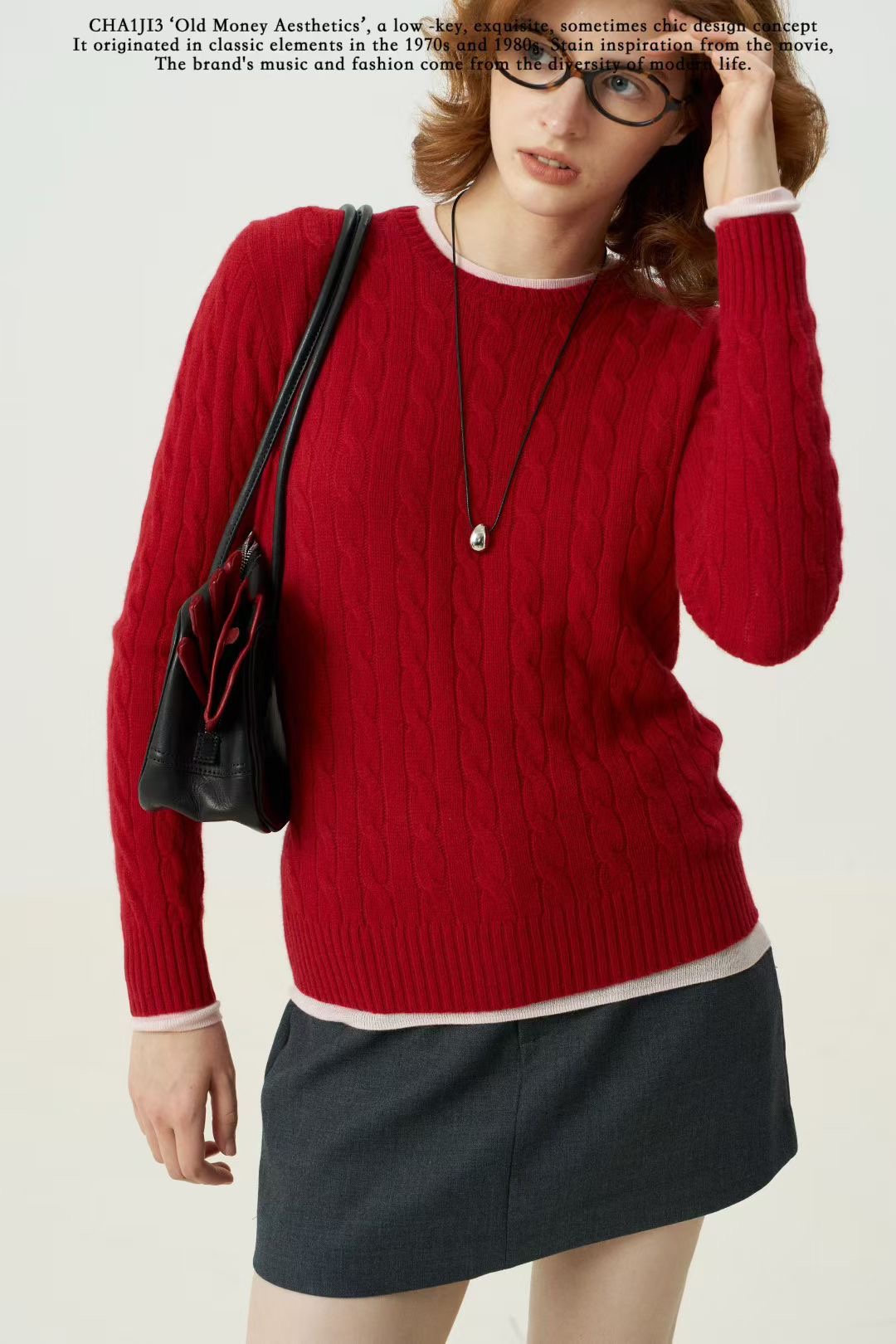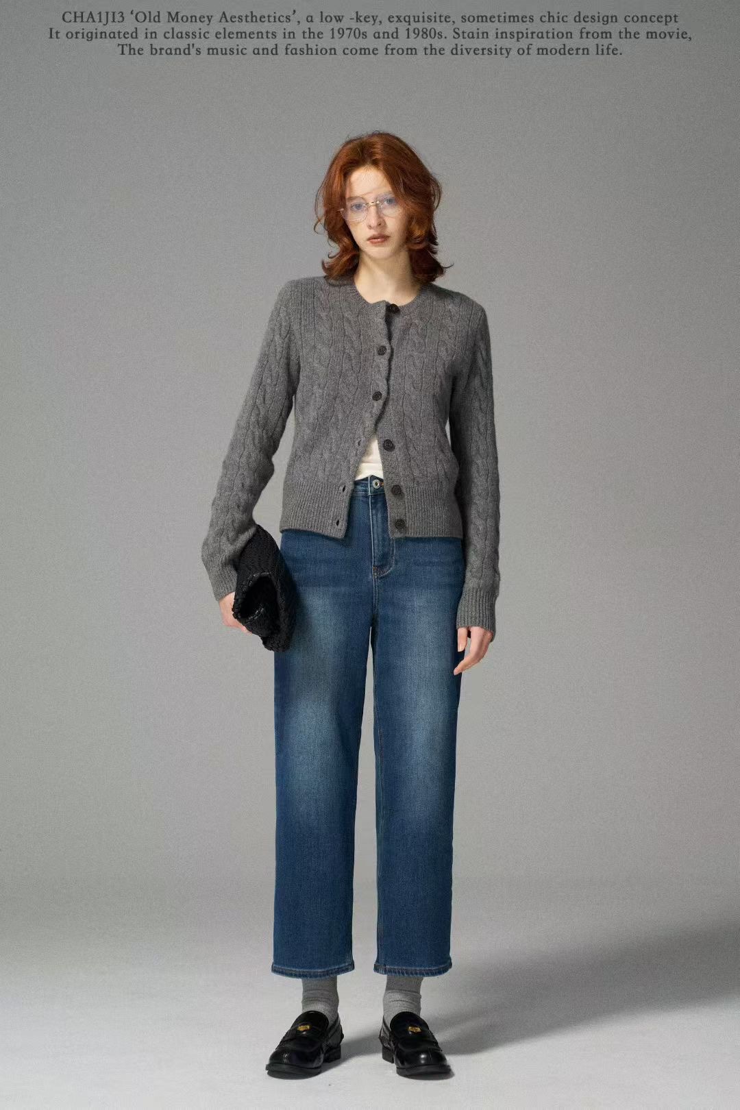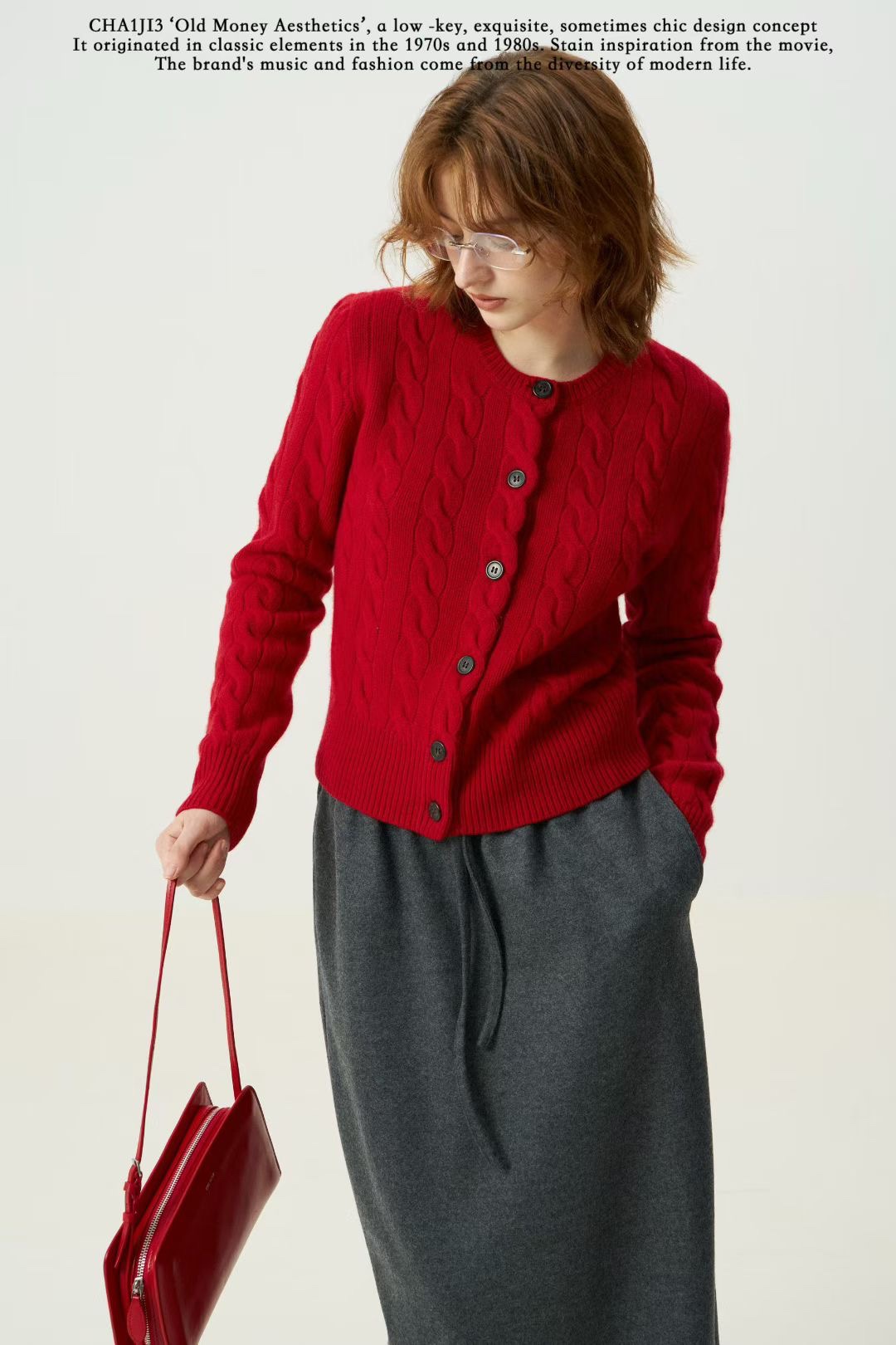 【à perles】羊毛复古绞花麦穗绣圆领和开衫两个版本