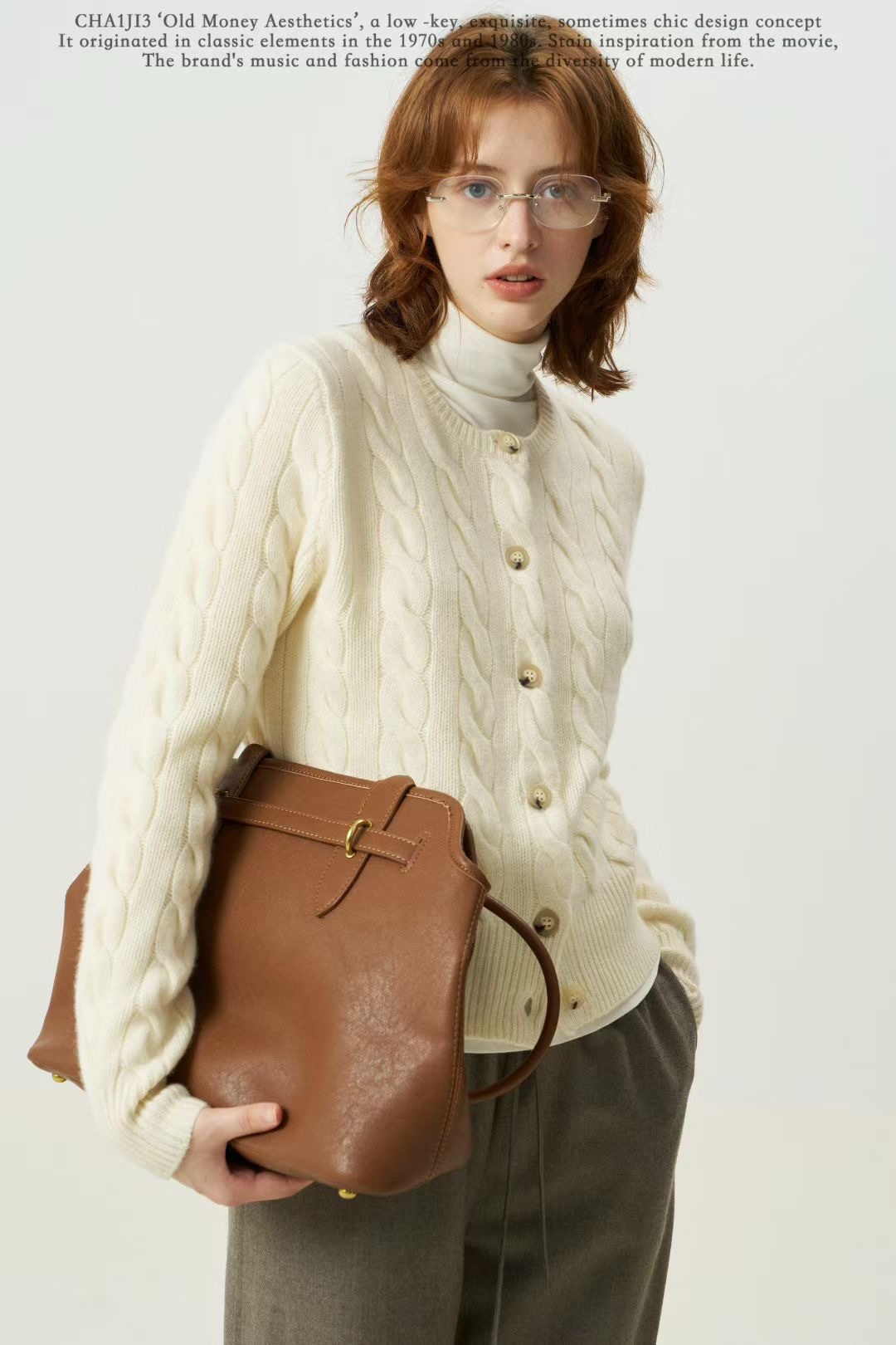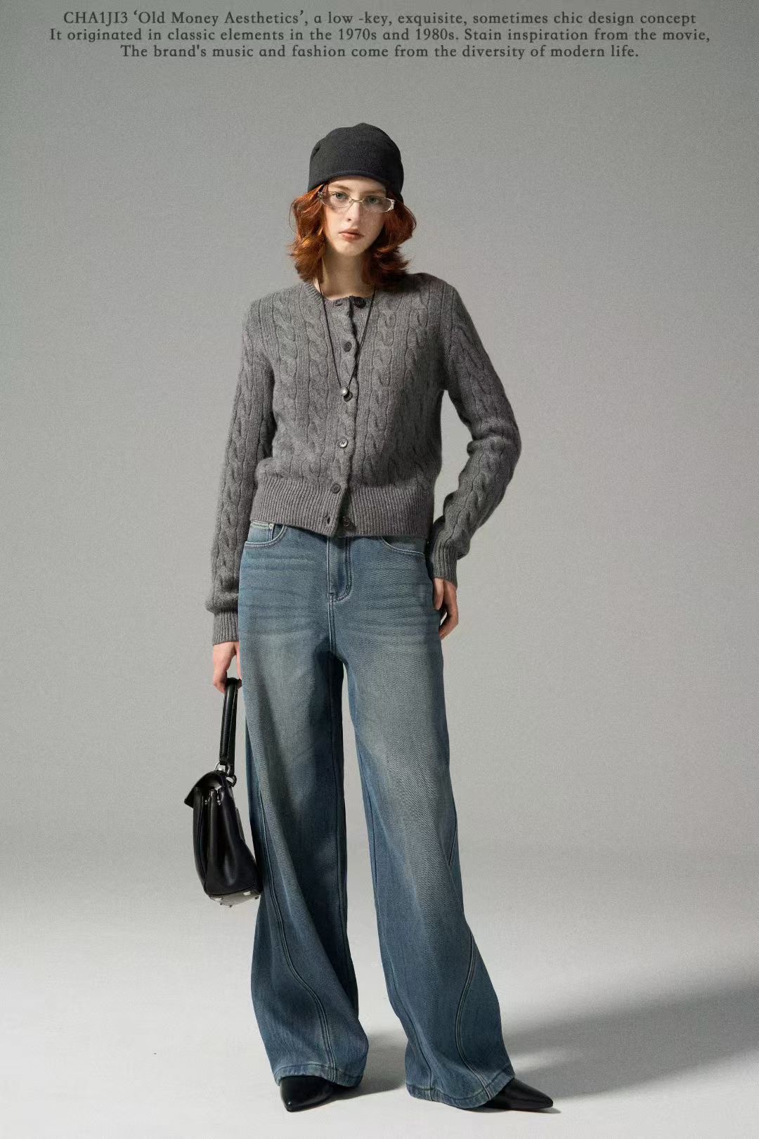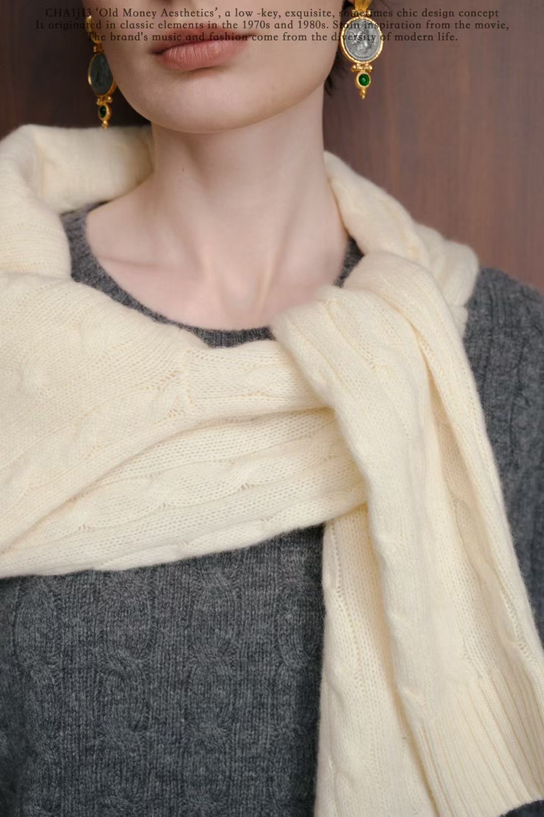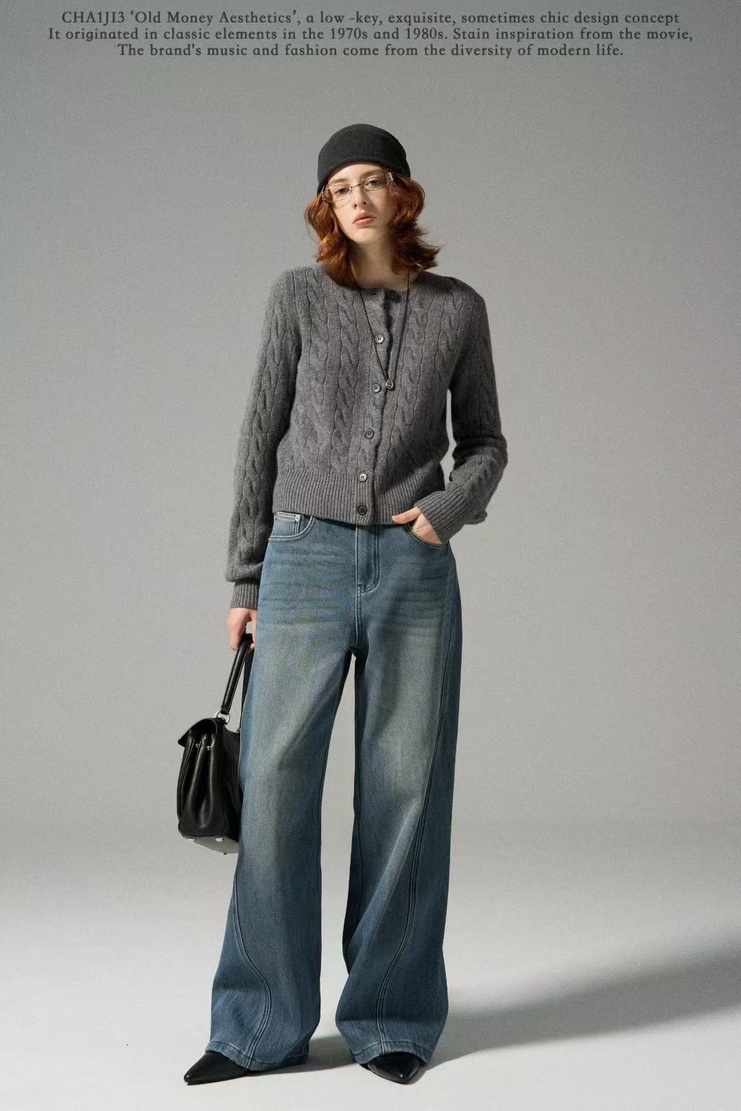 【à perles】羊毛复古绞花麦穗绣圆领和开衫两个版本