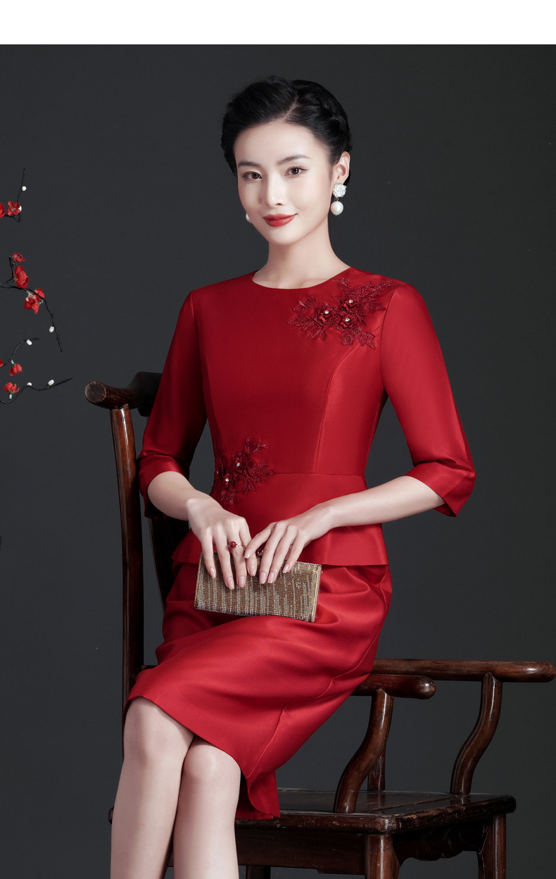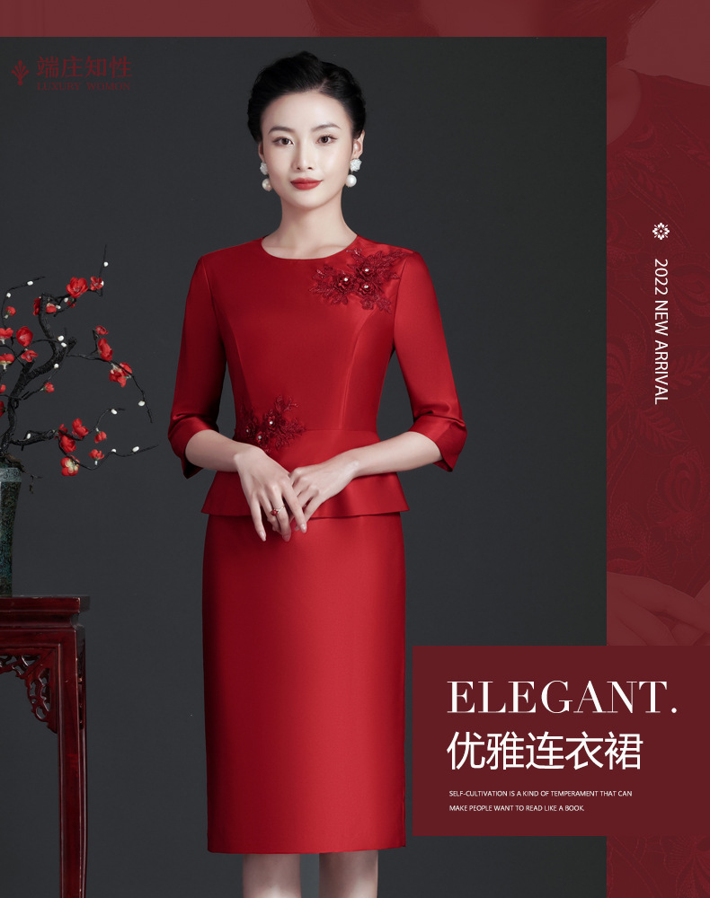 JC-JY5236喜婆婆婚礼服婚宴装气质旗袍儿女结婚春秋洋气连衣裙