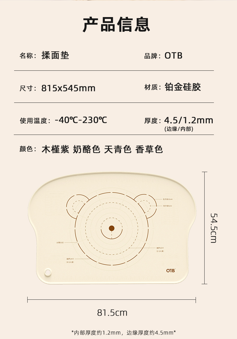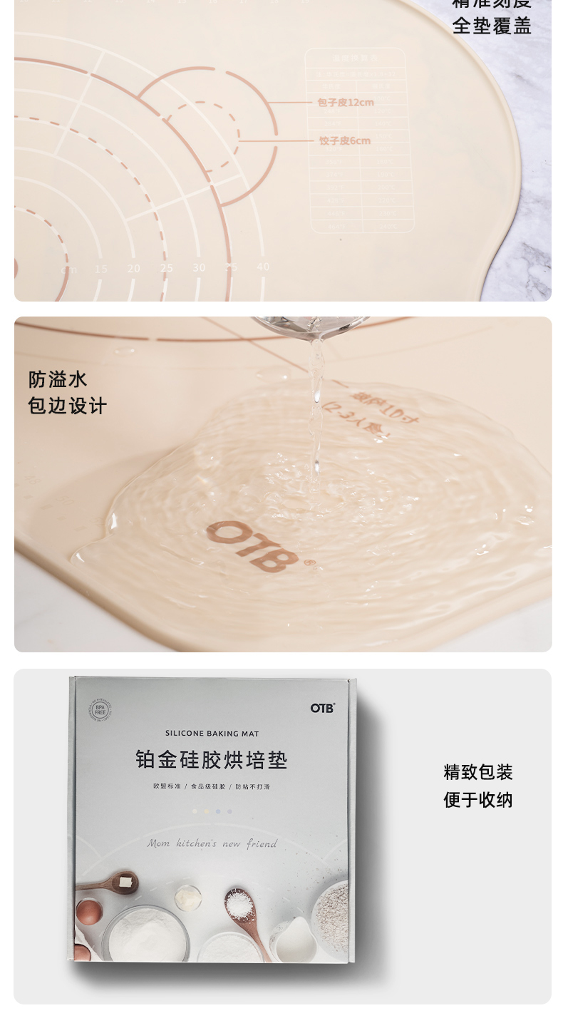 OTB铂金硅胶揉面垫 加厚加大硅胶揉面垫 符合德国LFGB食品接触级标准