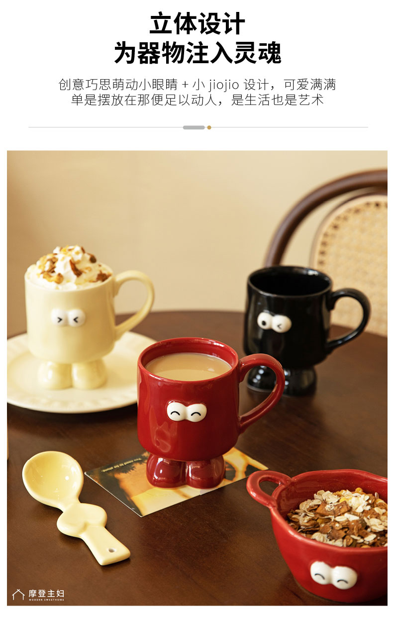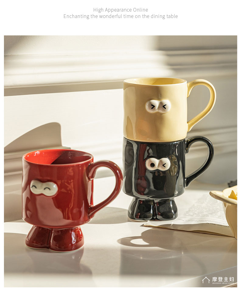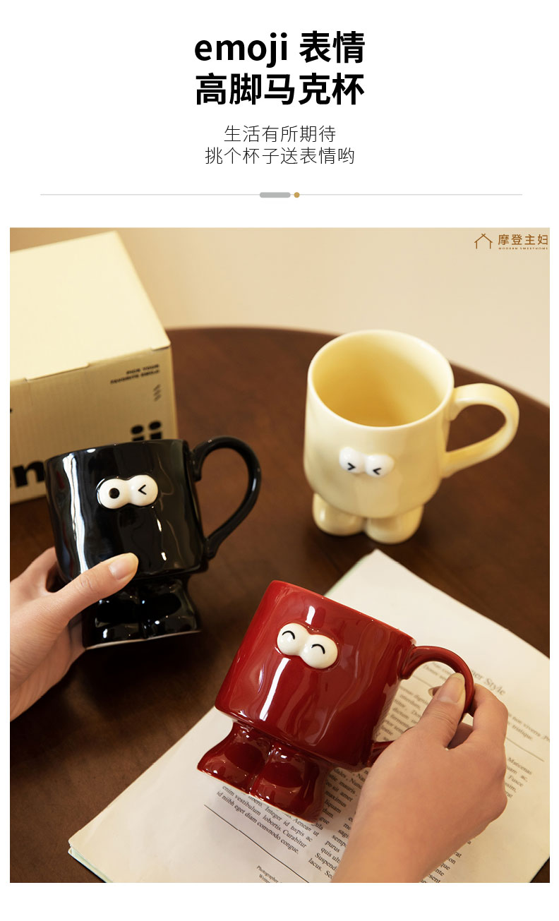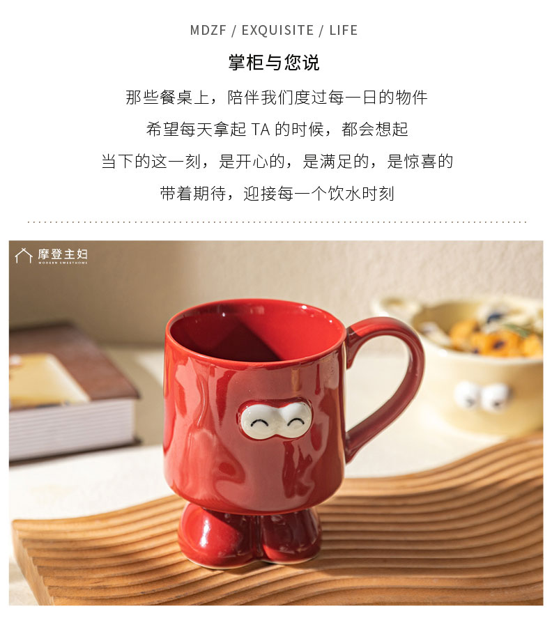 摩登主妇陶瓷马克杯可爱表情高脚杯子情侣水杯红色家用喝水早餐杯