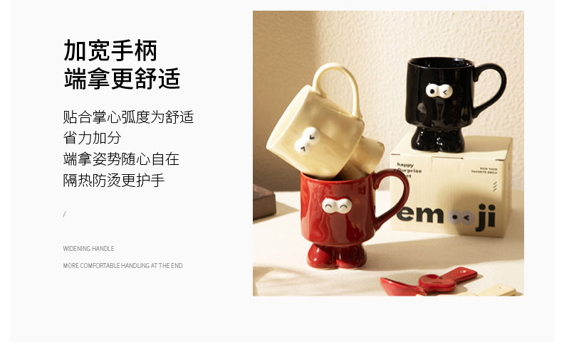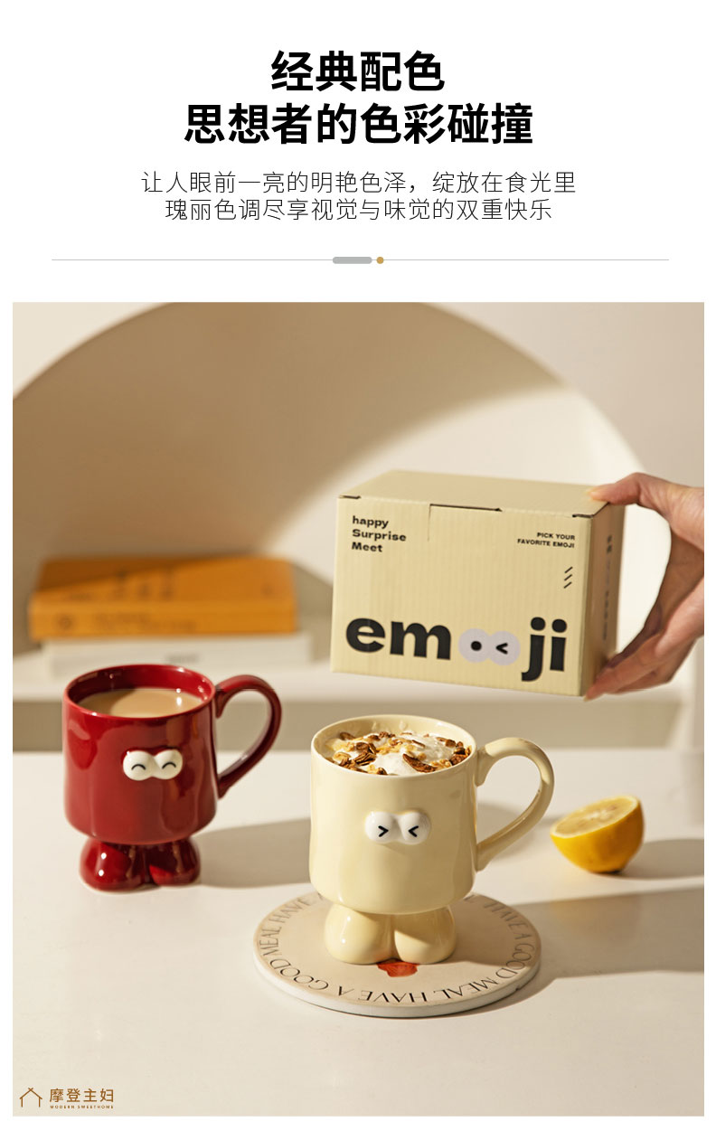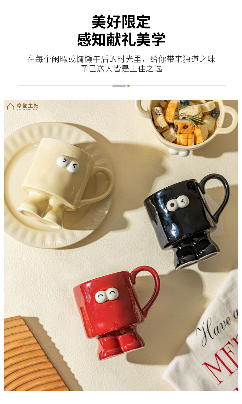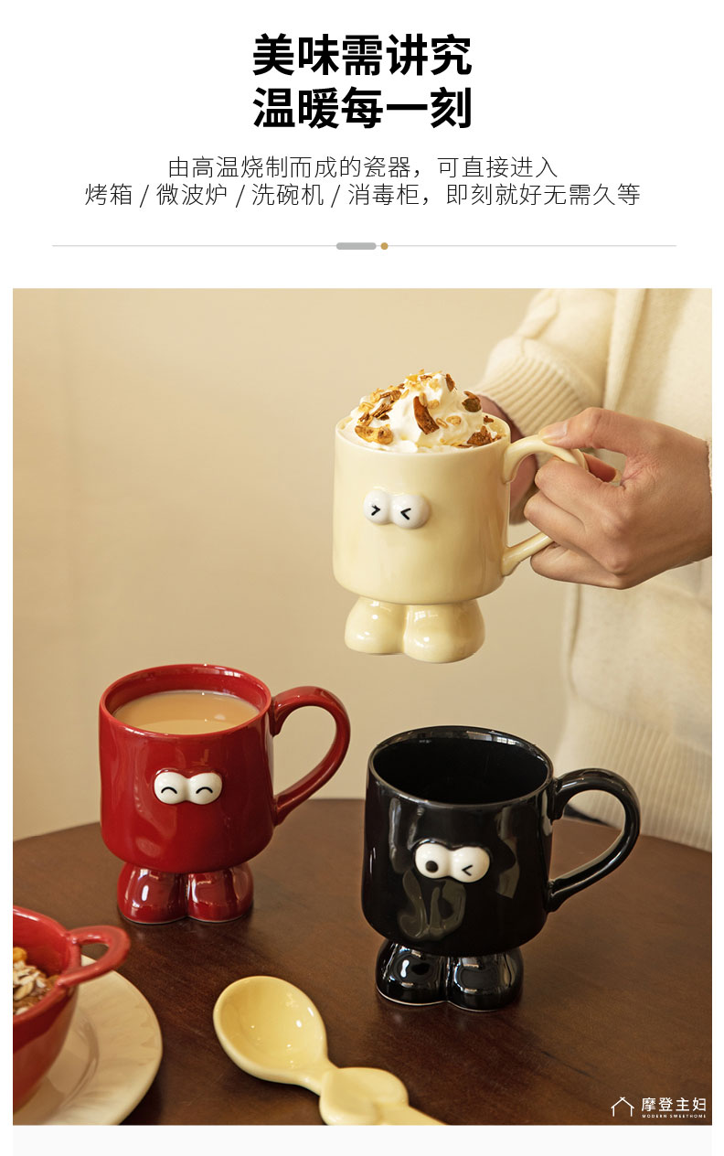 摩登主妇陶瓷马克杯可爱表情高脚杯子情侣水杯红色家用喝水早餐杯