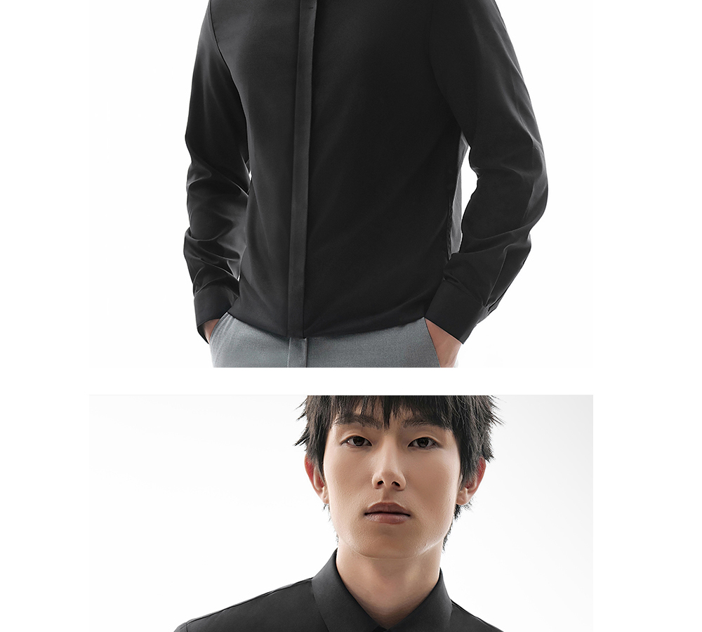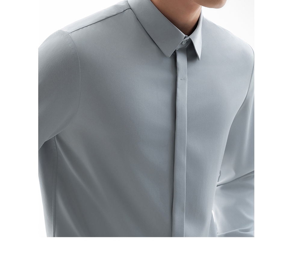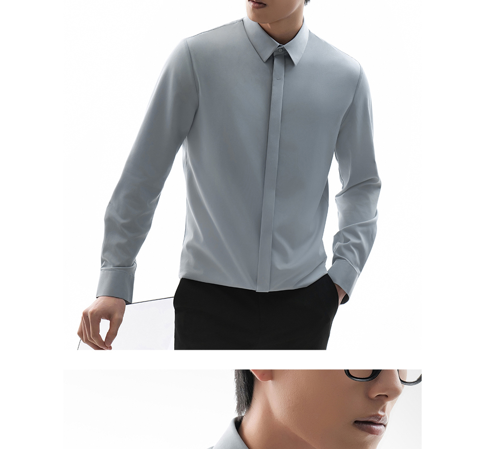 HIM漢崇 暗门襟基础款修身衬衫日常通勤职业商务正装衬衣2025秋季