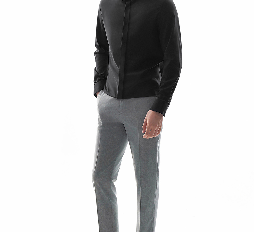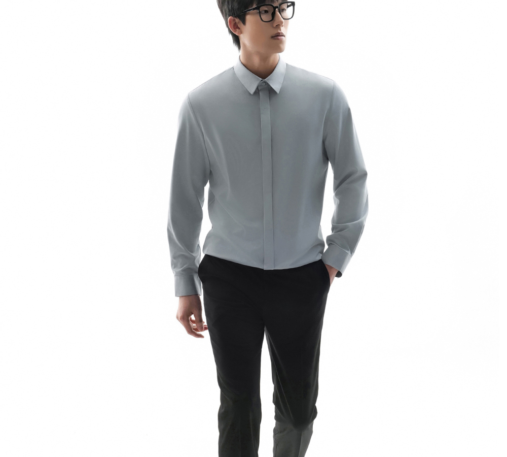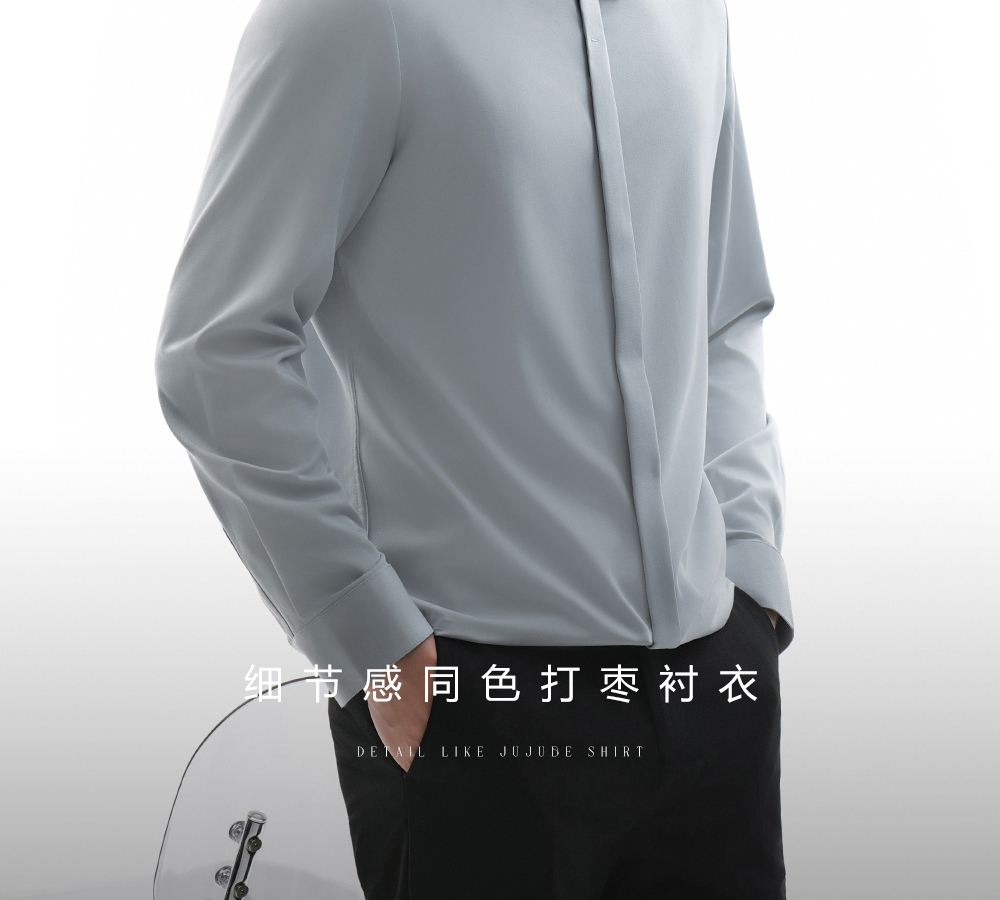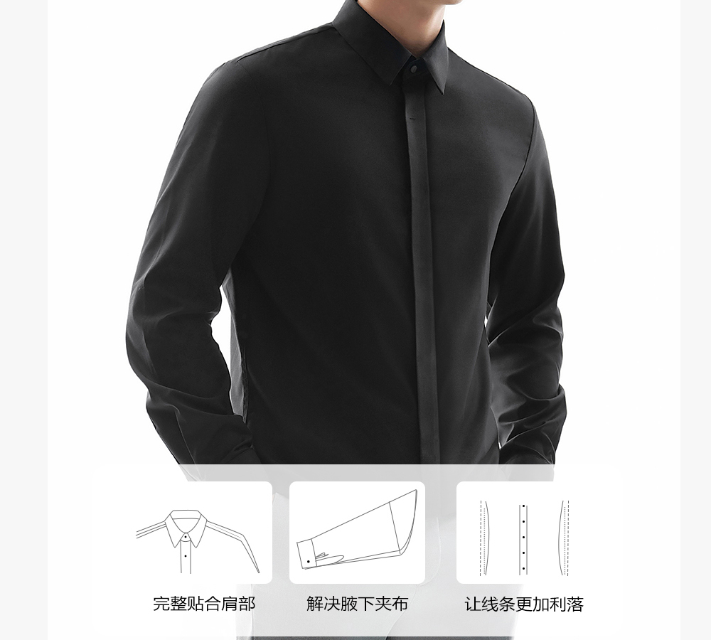 HIM漢崇 暗门襟基础款修身衬衫日常通勤职业商务正装衬衣2025秋季