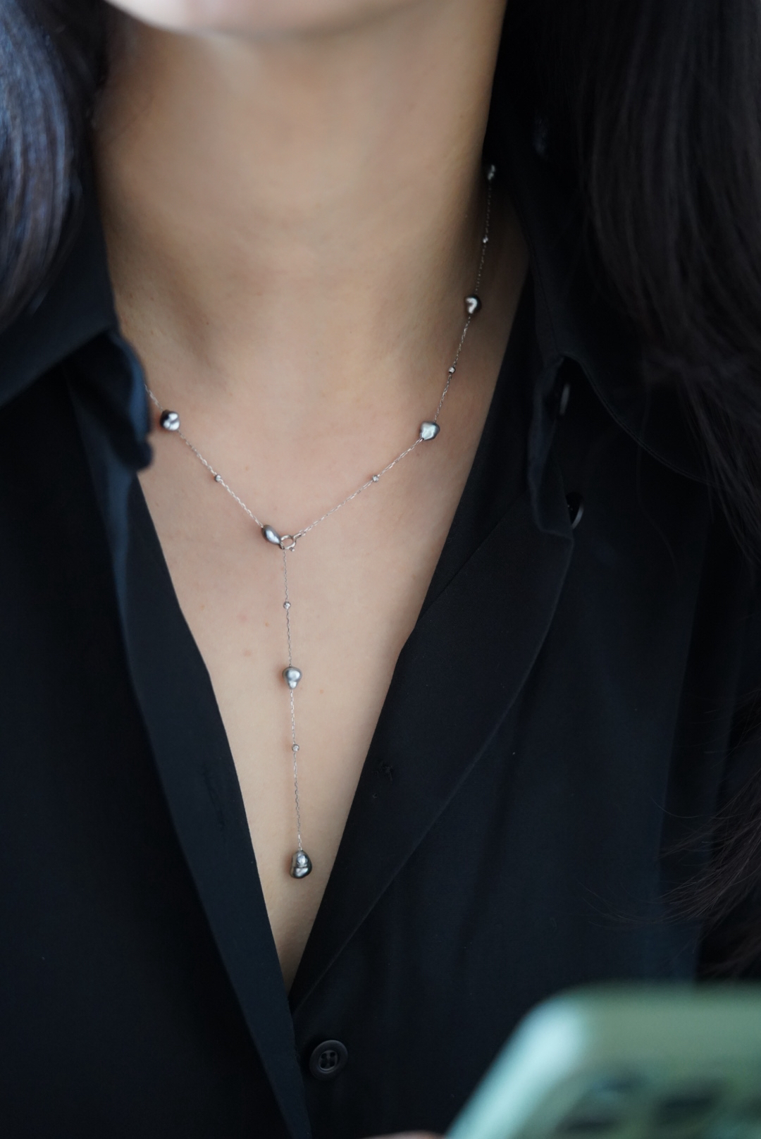 珍珠品类:大溪地铂金灰keshi