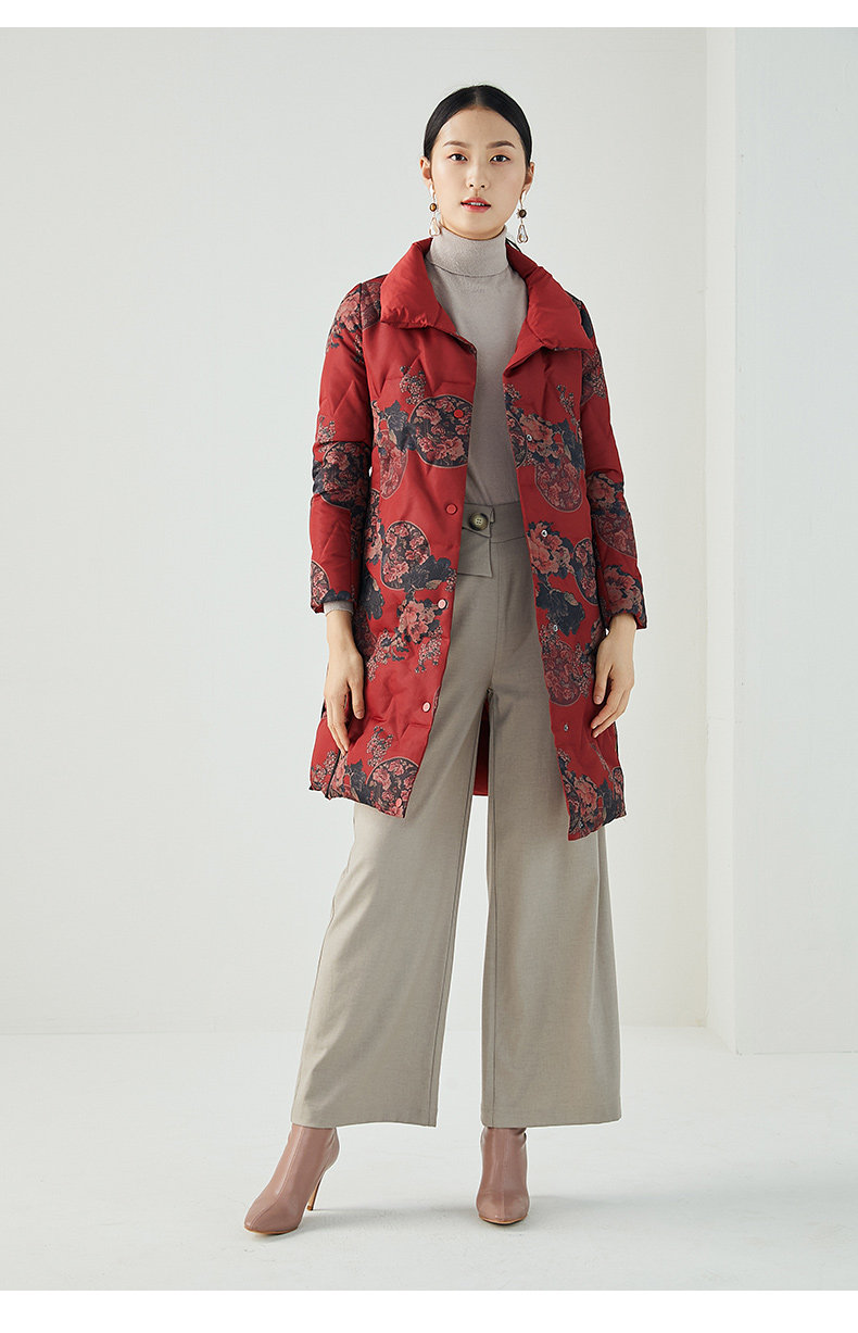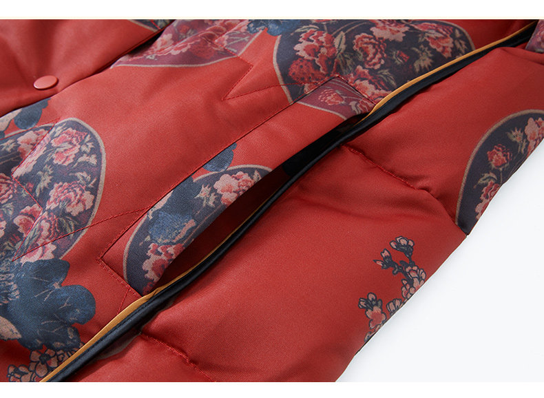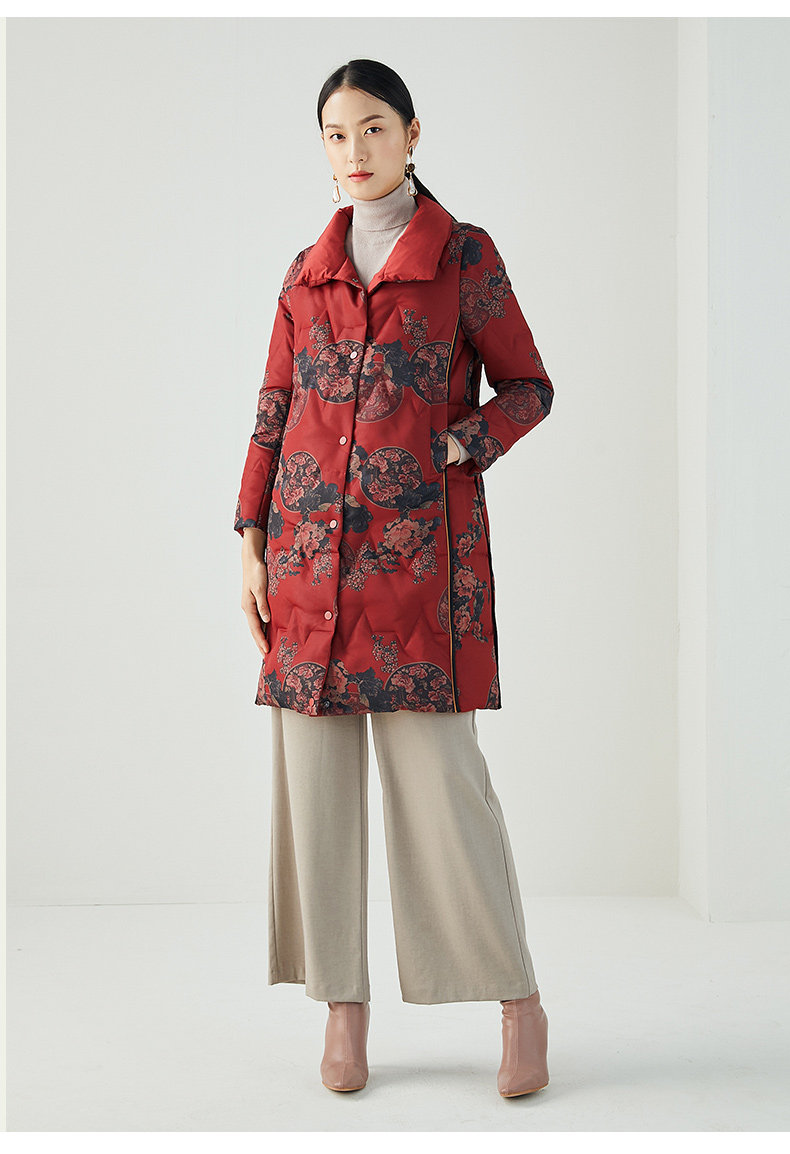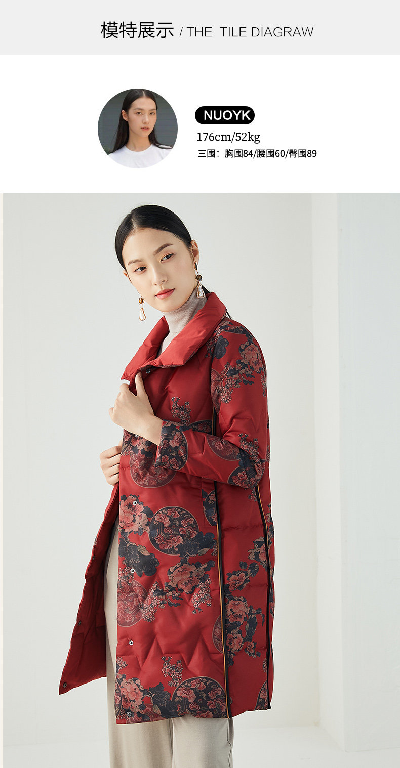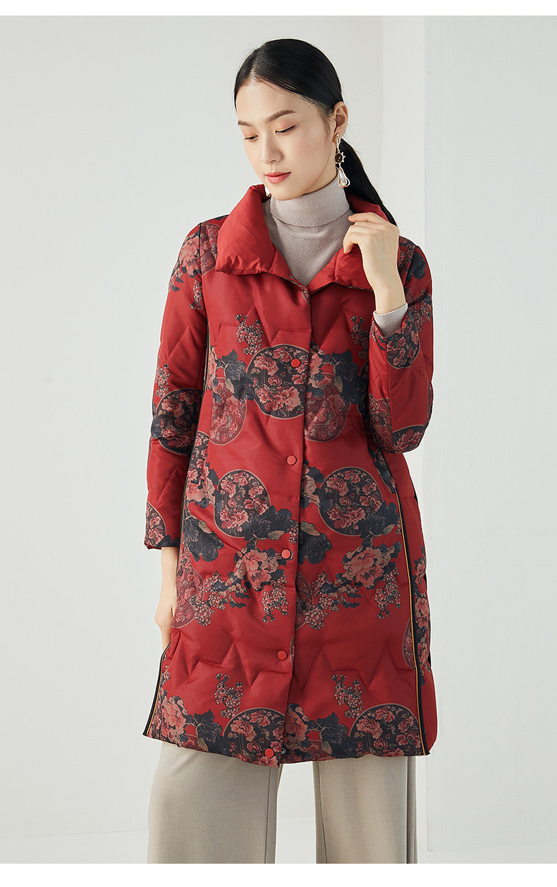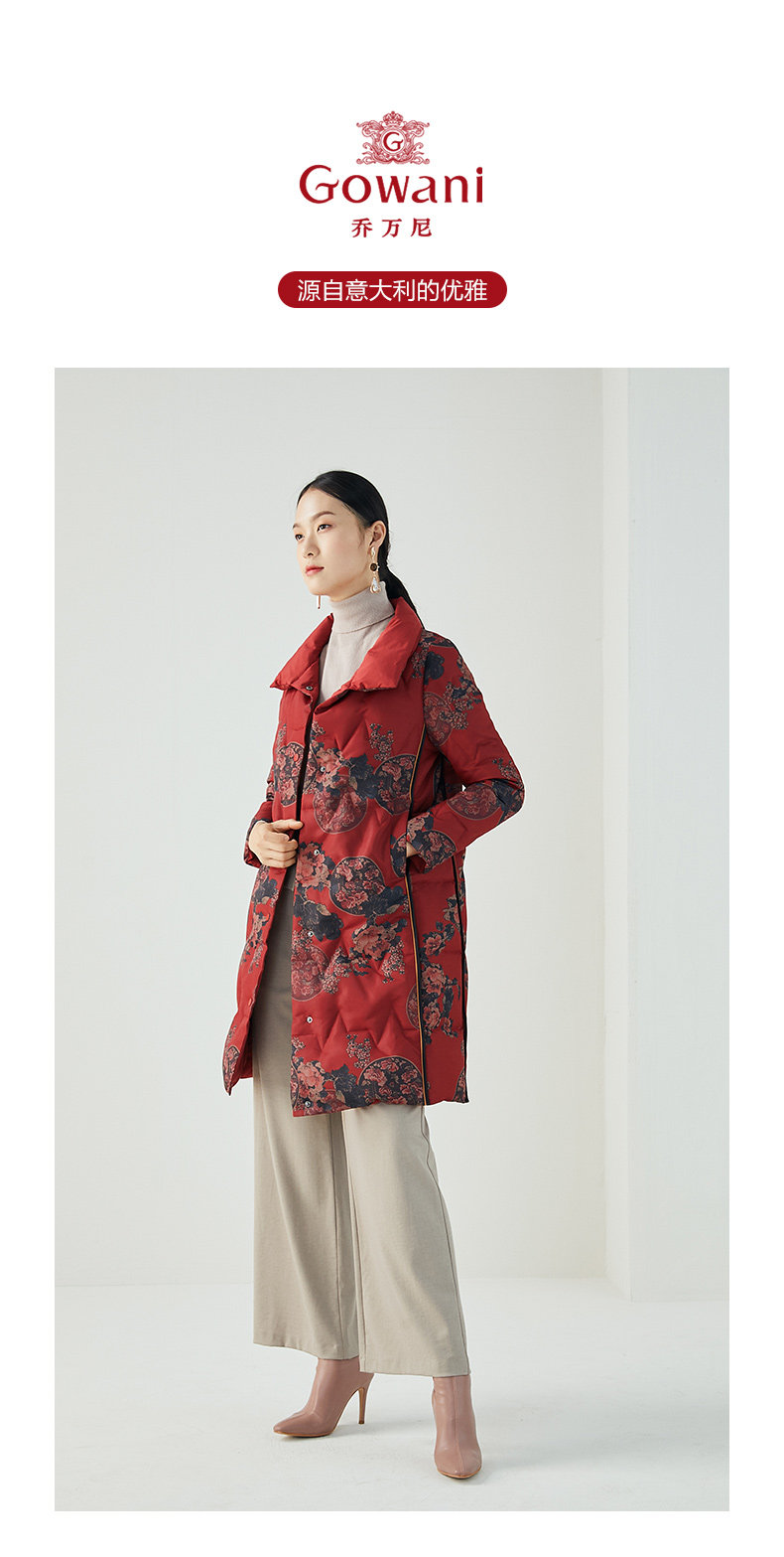 乔万尼秋冬国风牡丹贵气设计抗寒保暖中长款双面穿羽绒服ES4T415