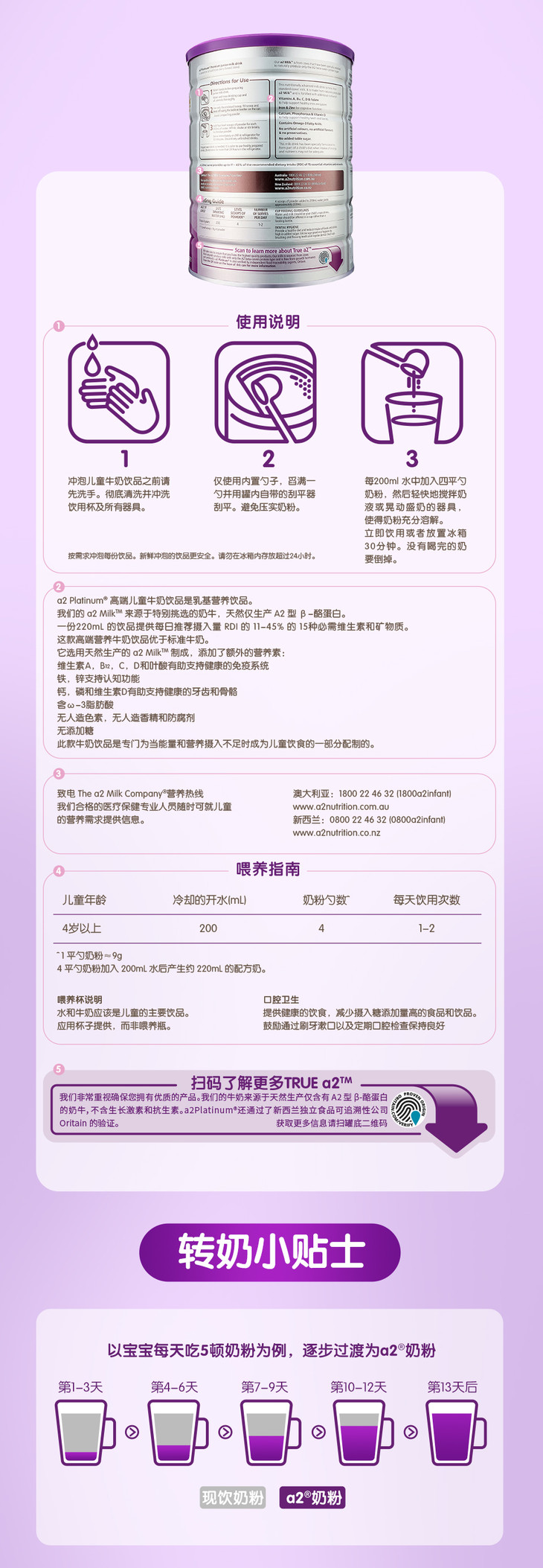 澳洲进口A2儿童配方奶粉 含天然A2蛋白质 4段900g(4岁以上)