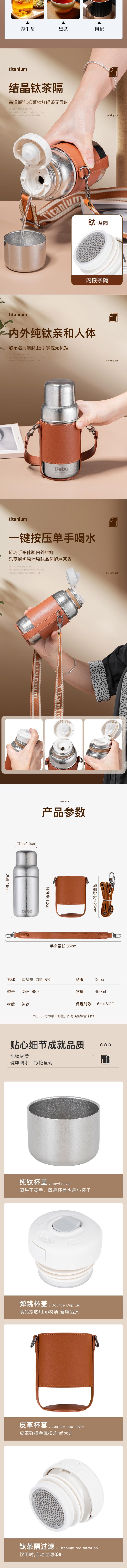 Debo德铂 潘多拉钛保温杯450ml DEP-889