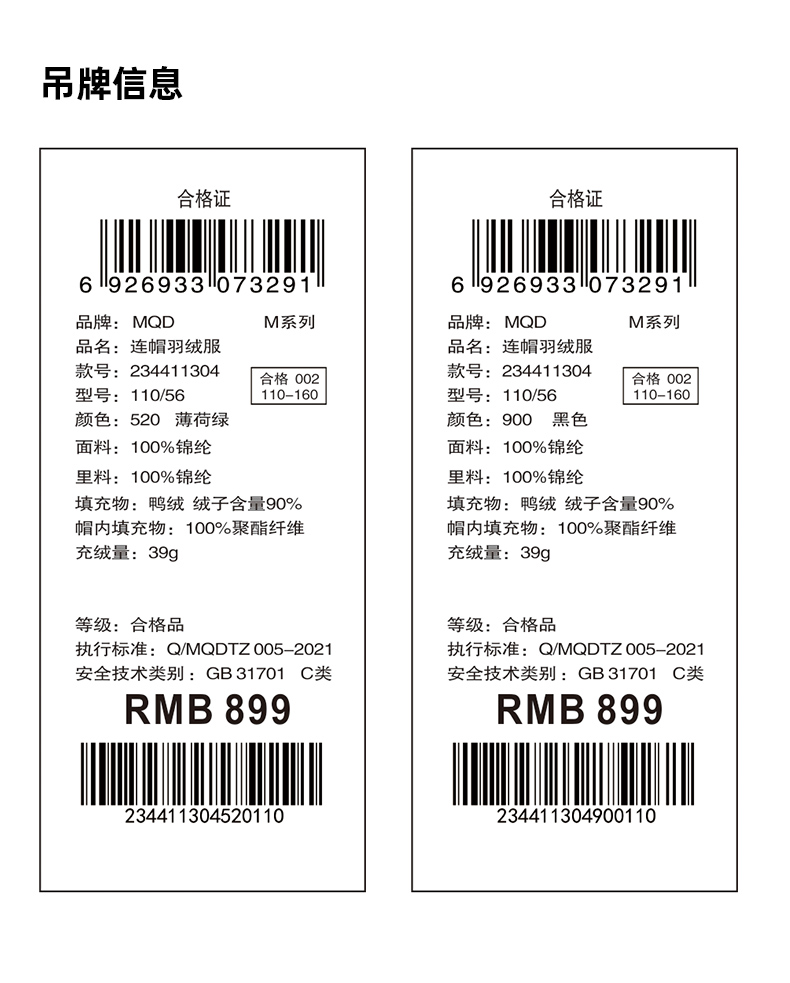 【秒1】【MQD】女童三防轻薄柔软舒适休闲连帽羽绒服