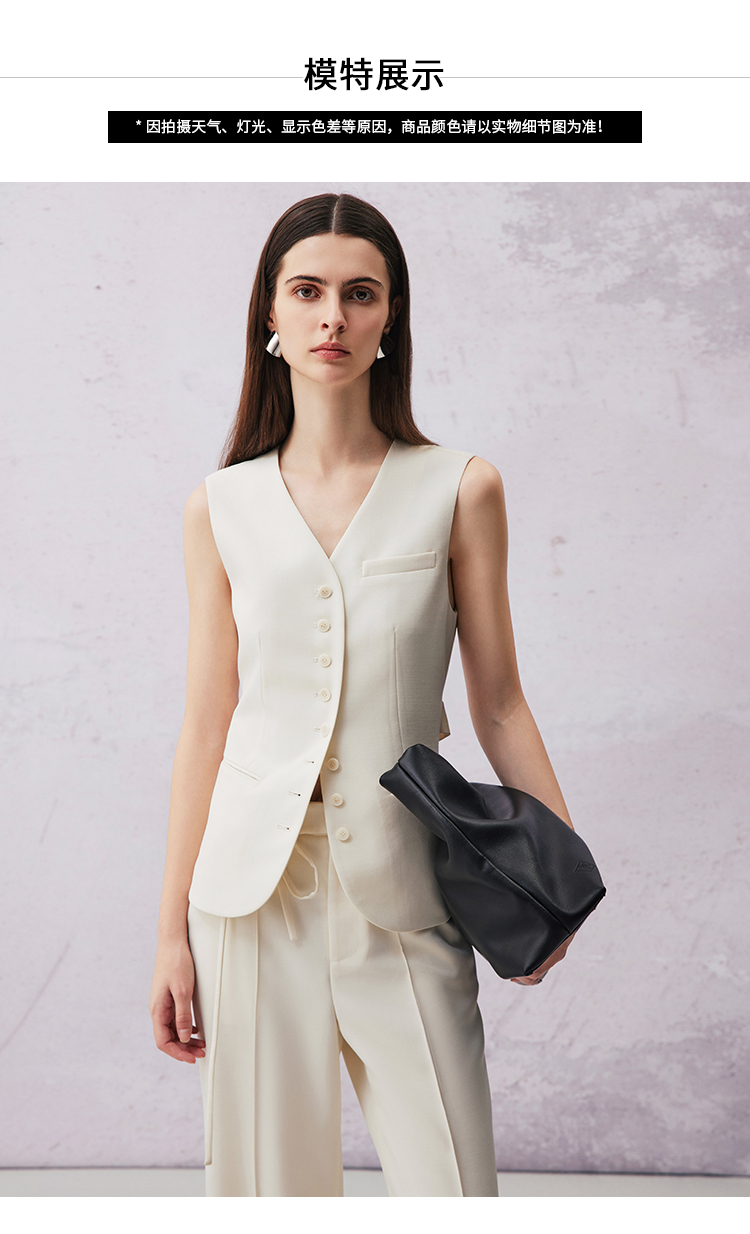 VIMAGE纬漫纪春季新款百搭马甲简约修身西装薄外套V2103730