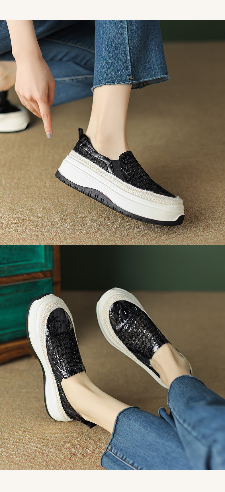 时尚减龄,厚底网纱乐福鞋TYM-1422