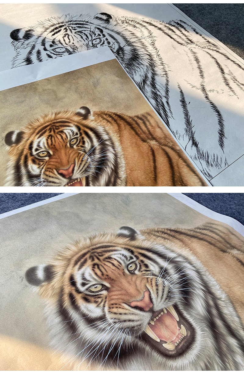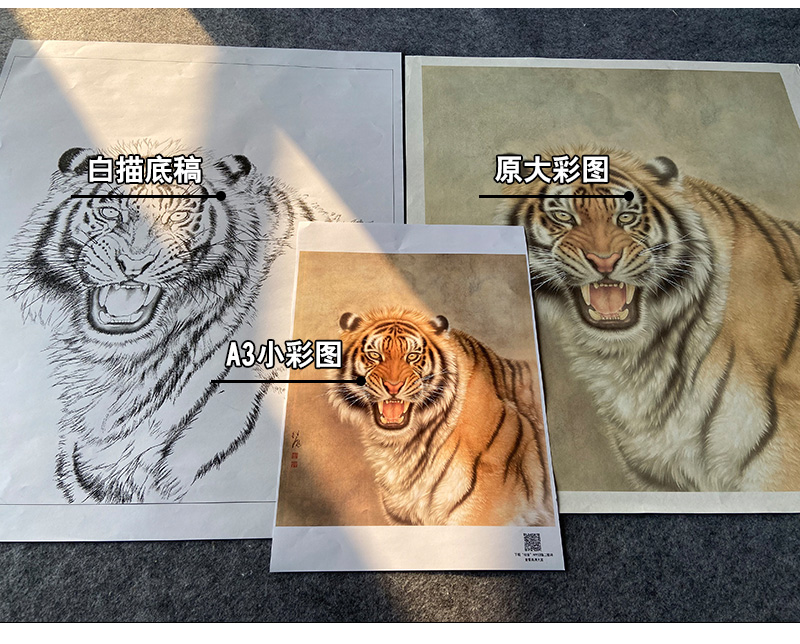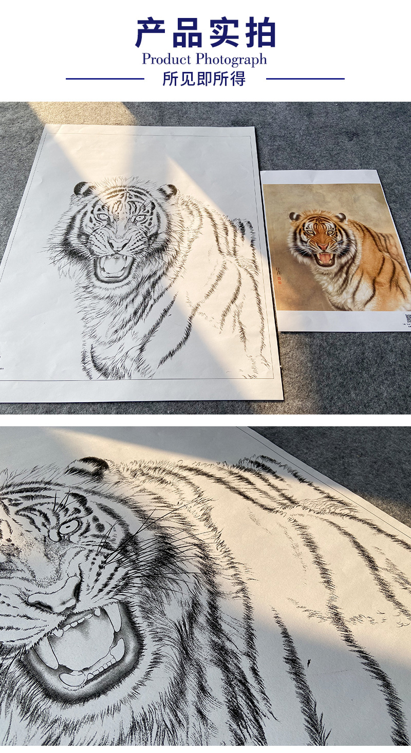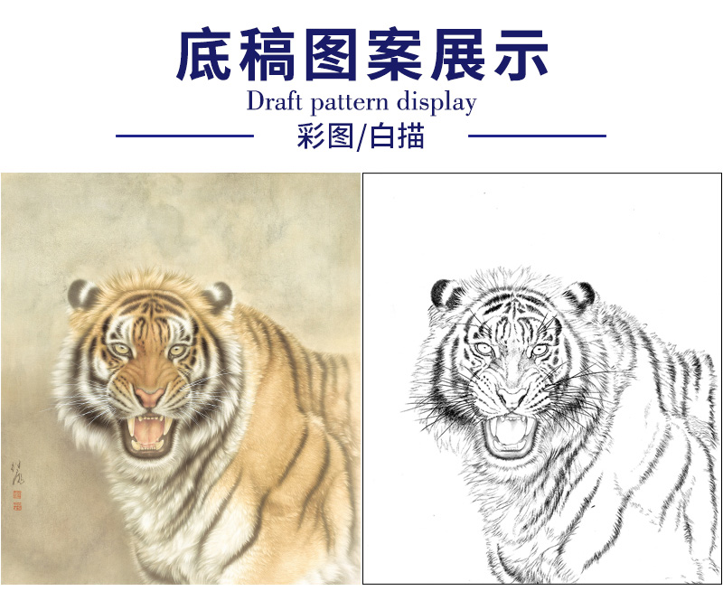 【大彩图】刘继彪工笔画白描底稿《老虎》初学者临摹动物线稿A631