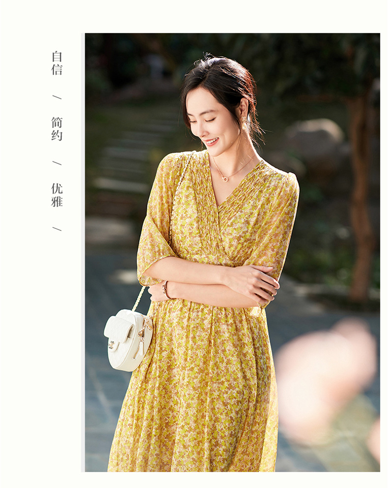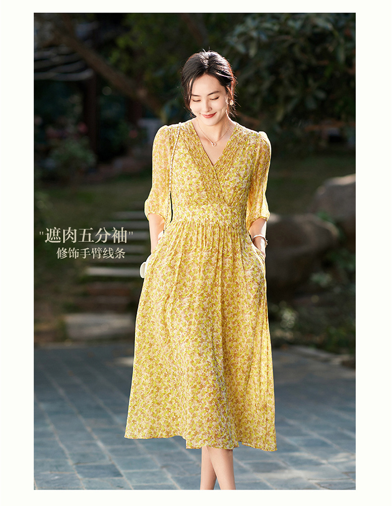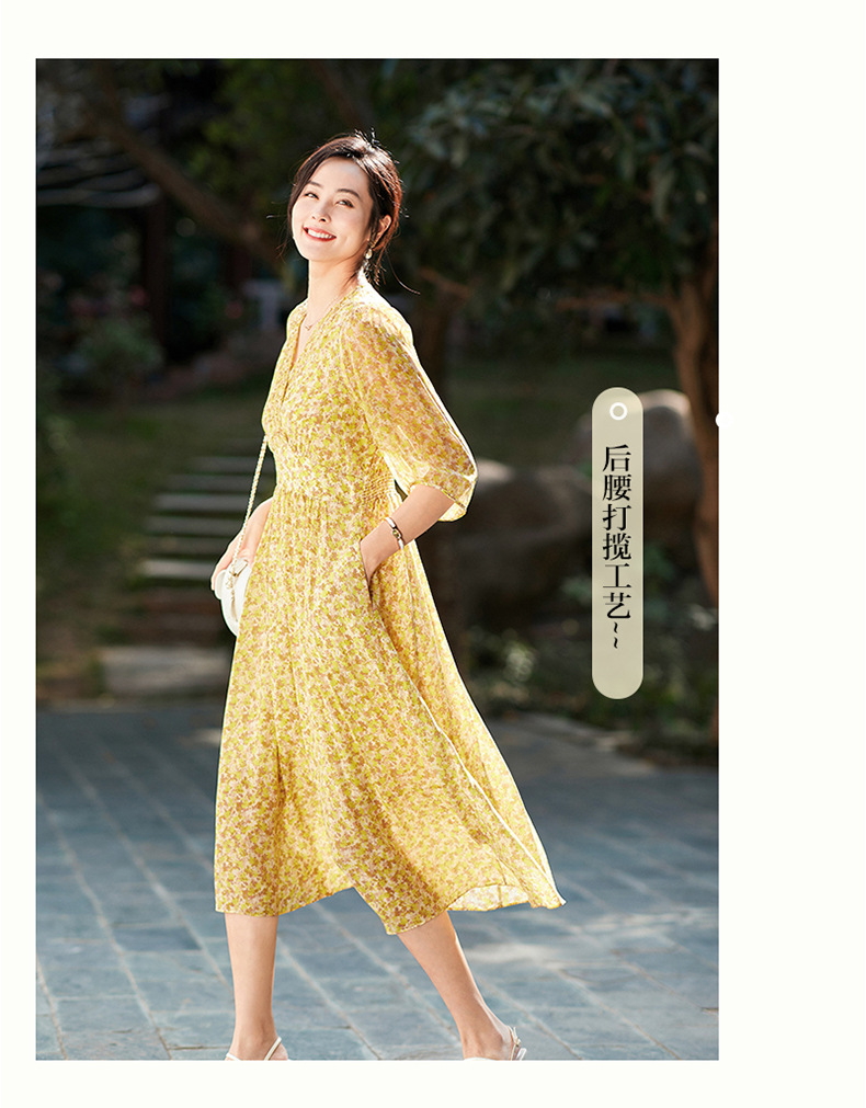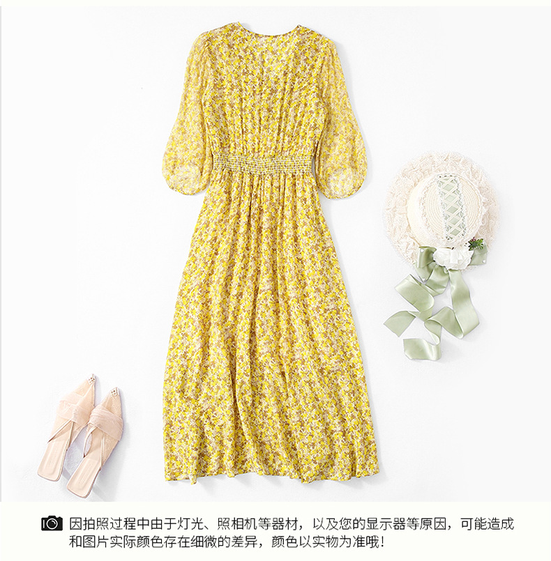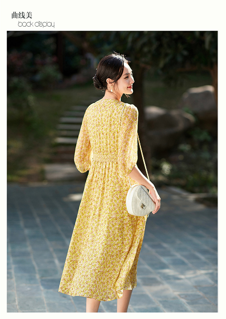 CS 75210 碎花真丝收腰气质桑蚕丝连衣裙