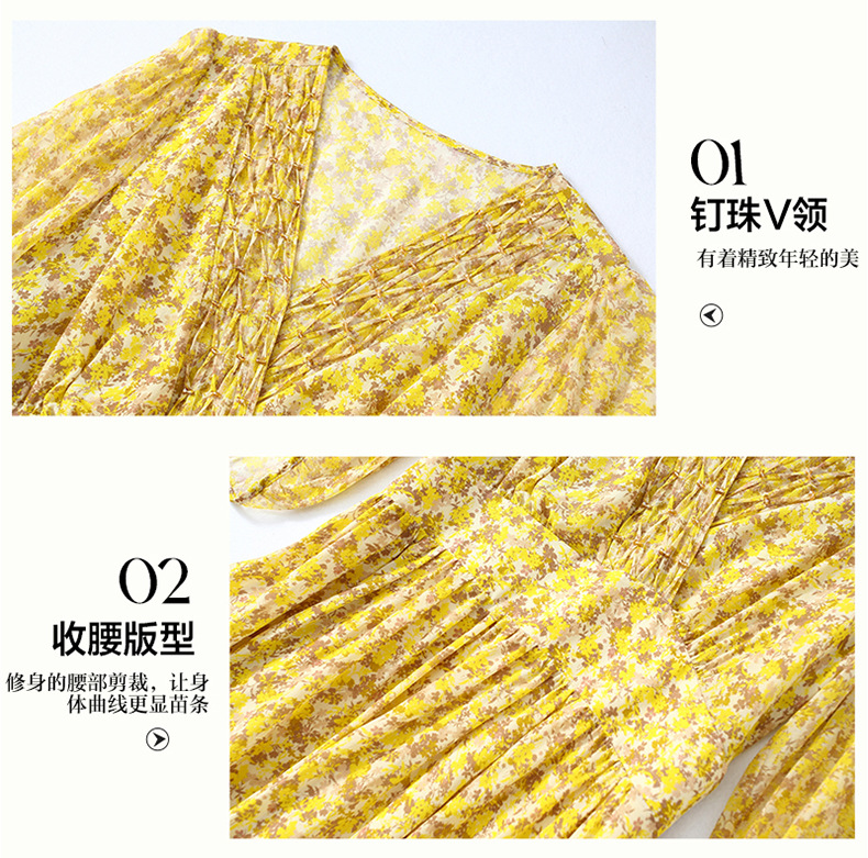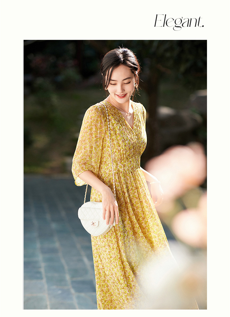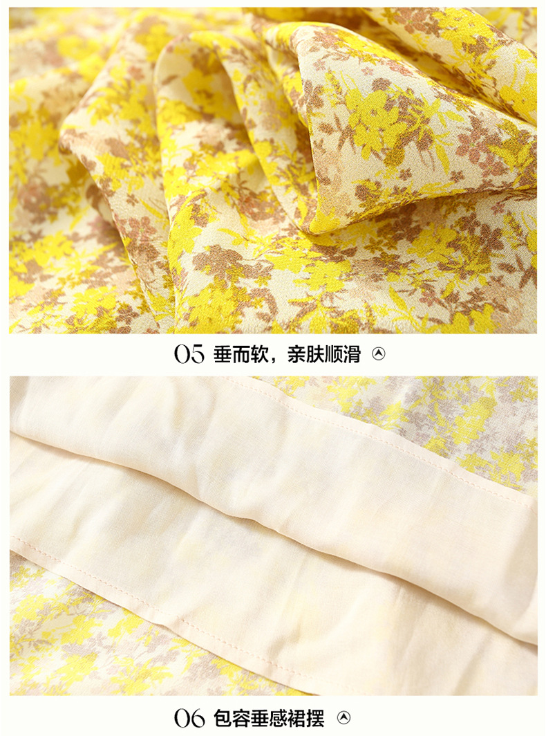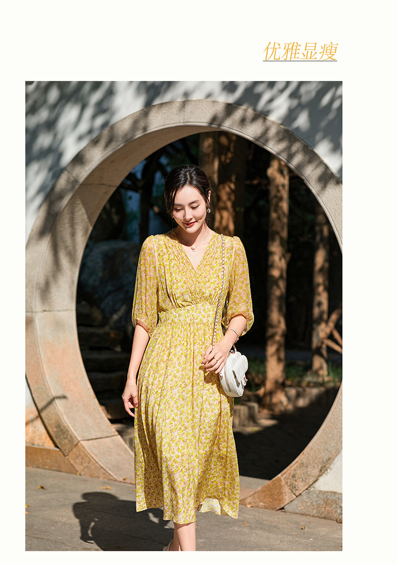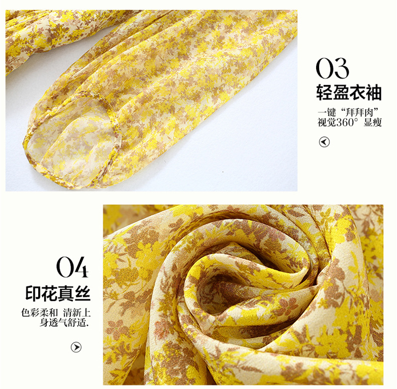 CS 75210 碎花真丝收腰气质桑蚕丝连衣裙