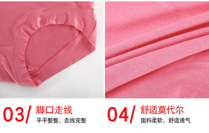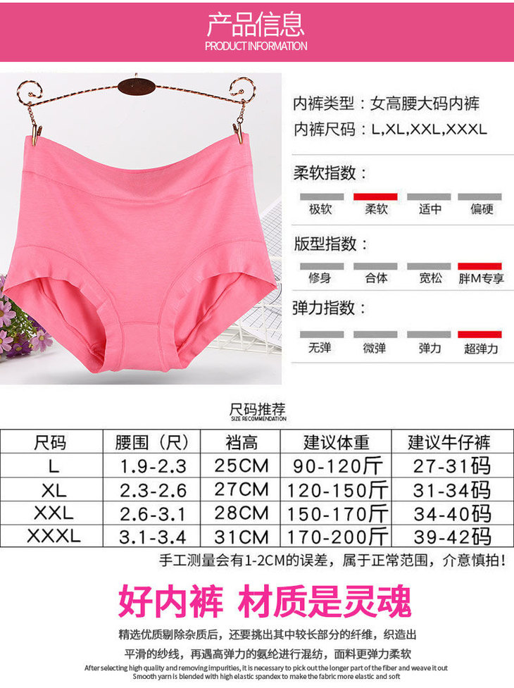 TZW-南极人4条莫代尔高腰内裤女裆加大码200斤三角裤头