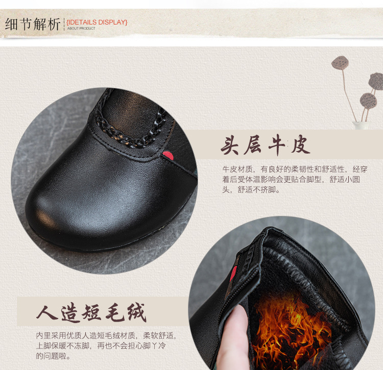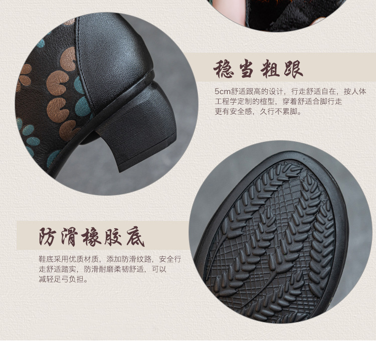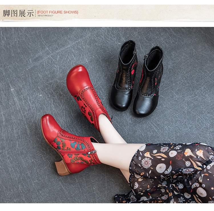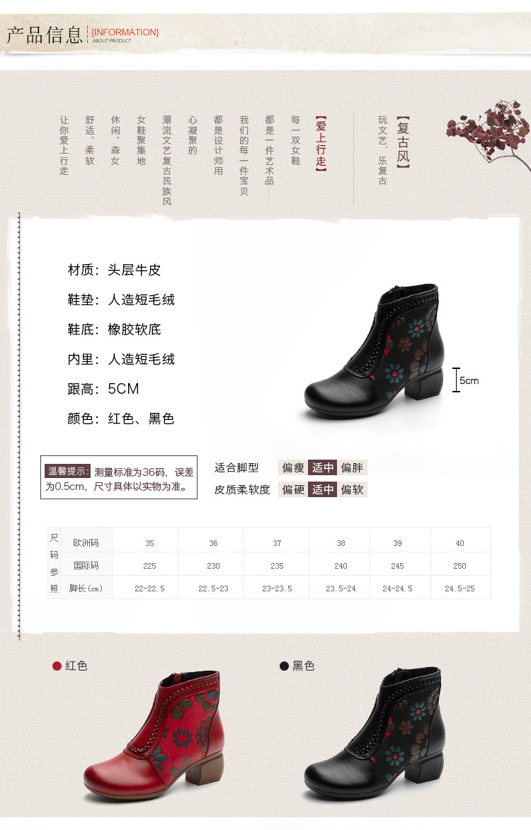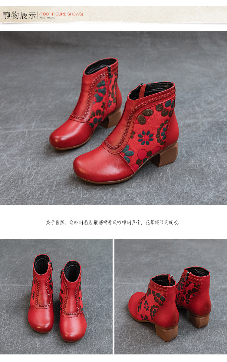 GL20239靴子女2023秋冬新款民族风真皮拼色印花女靴粗跟软底短靴 商品图3