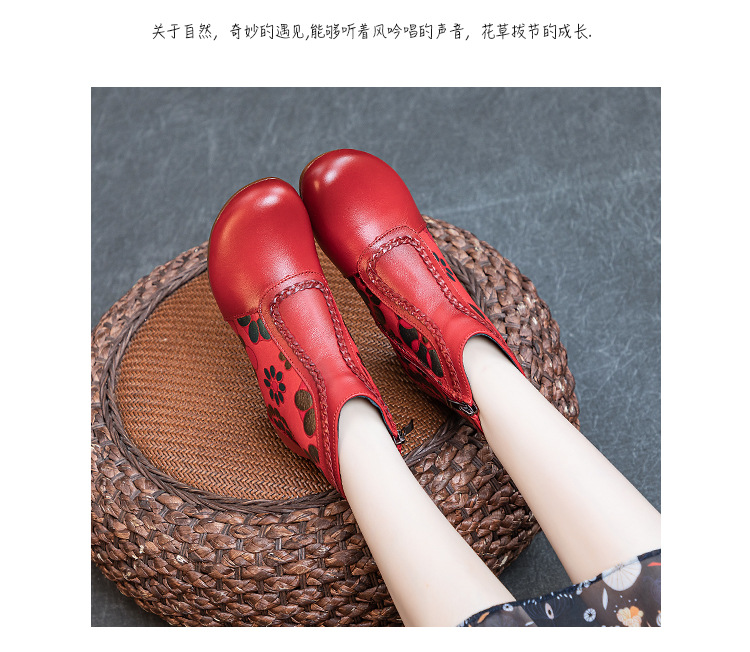 GL20239靴子女2023秋冬新款民族风真皮拼色印花女靴粗跟软底短靴 商品图4