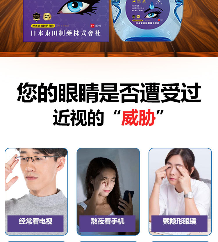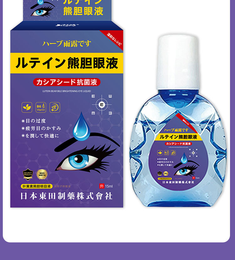 丁摩 【2瓶装】正品日本東田叶黄素熊胆明目滴眼液眼疲劳视力模糊干涩眼药滴水眼干5ZF-3954