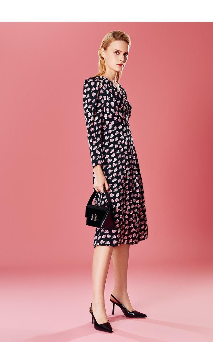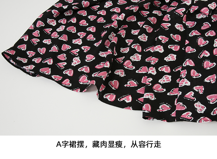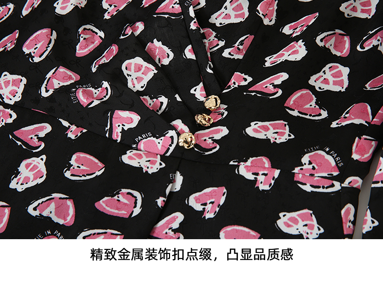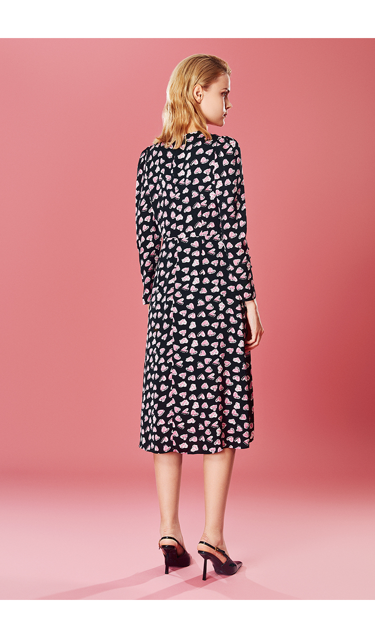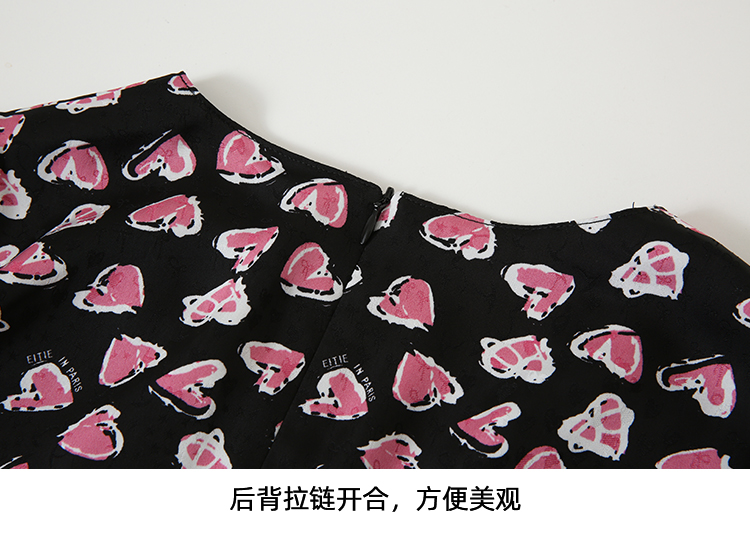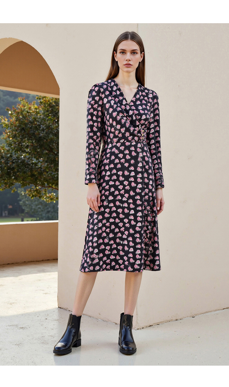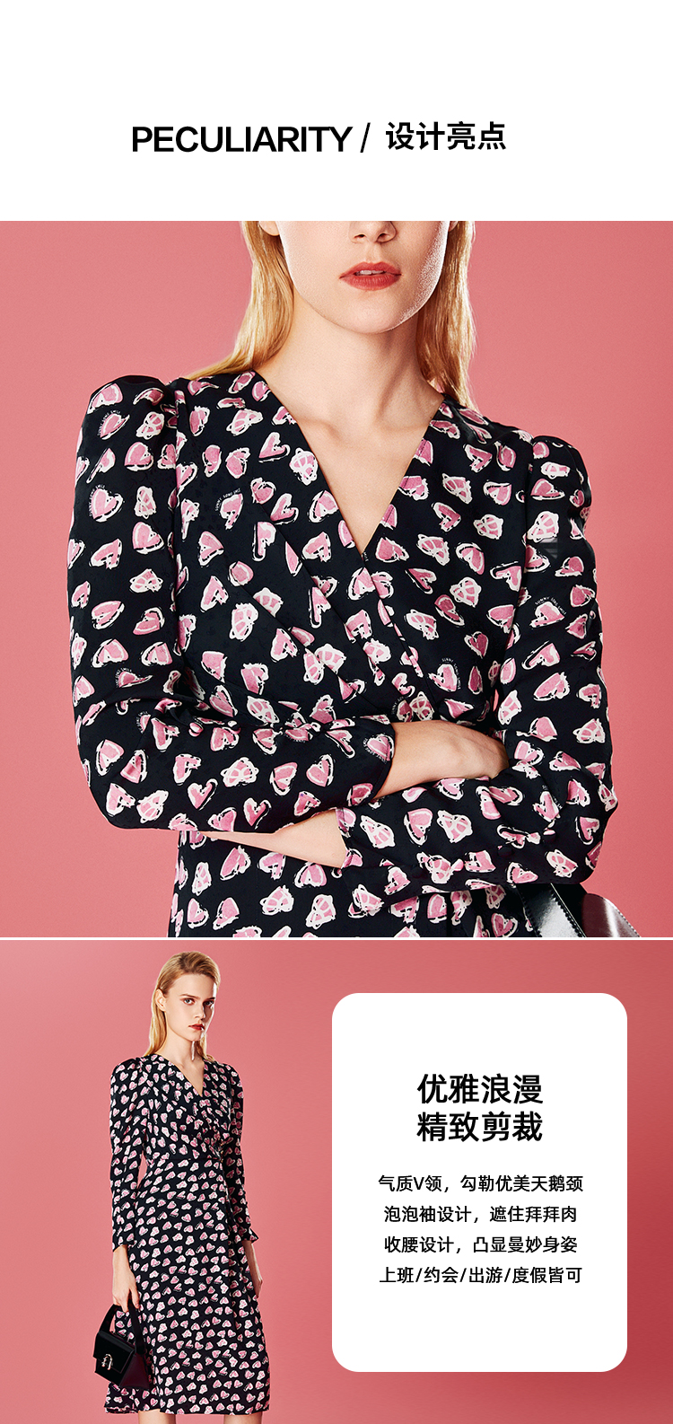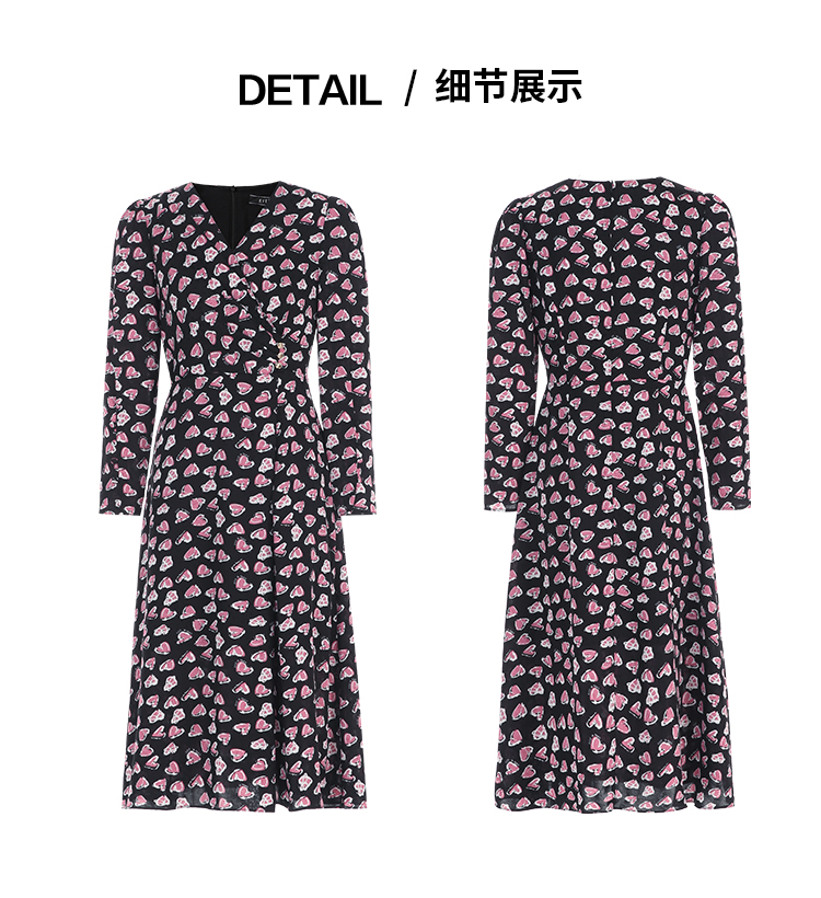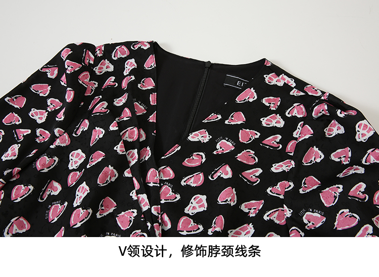 EITIE爱特爱V领收腰显瘦气质印花连衣裙秋季新款7907621