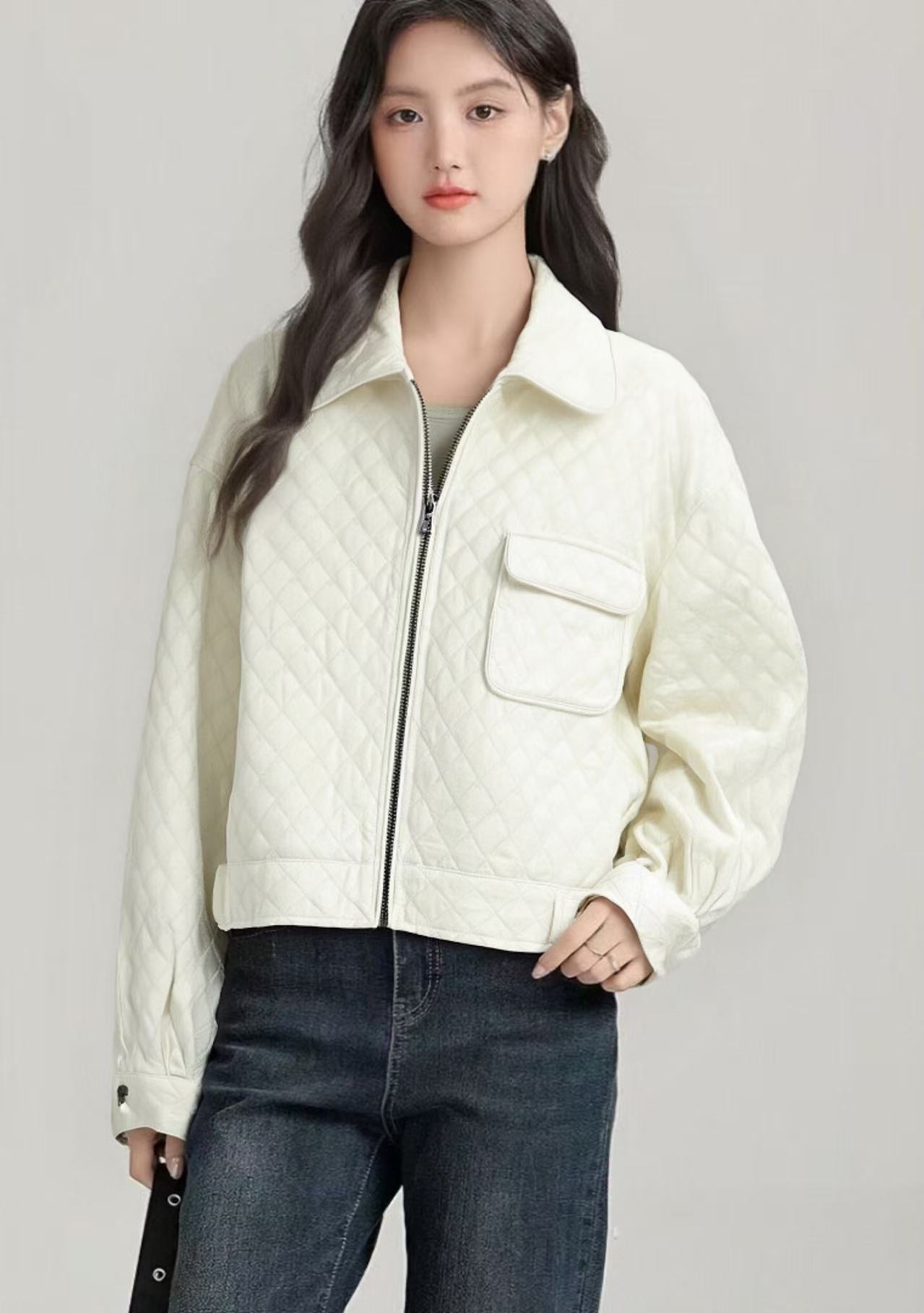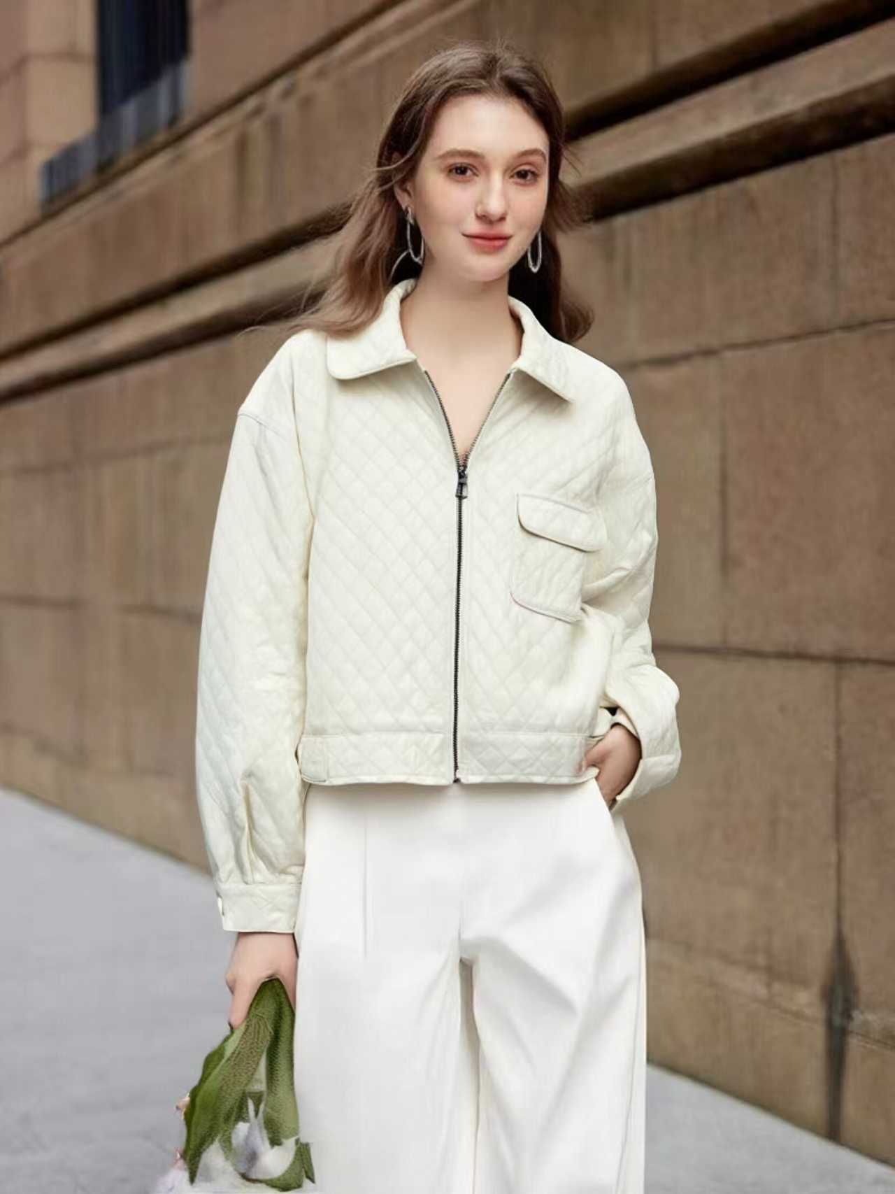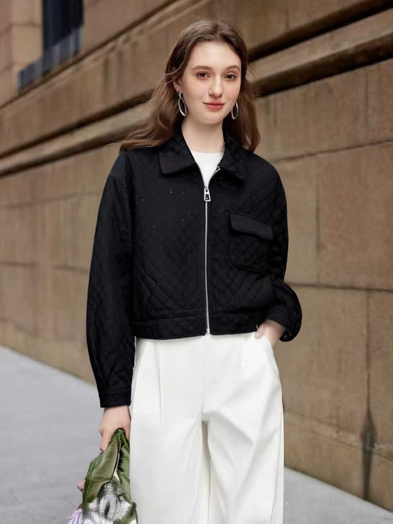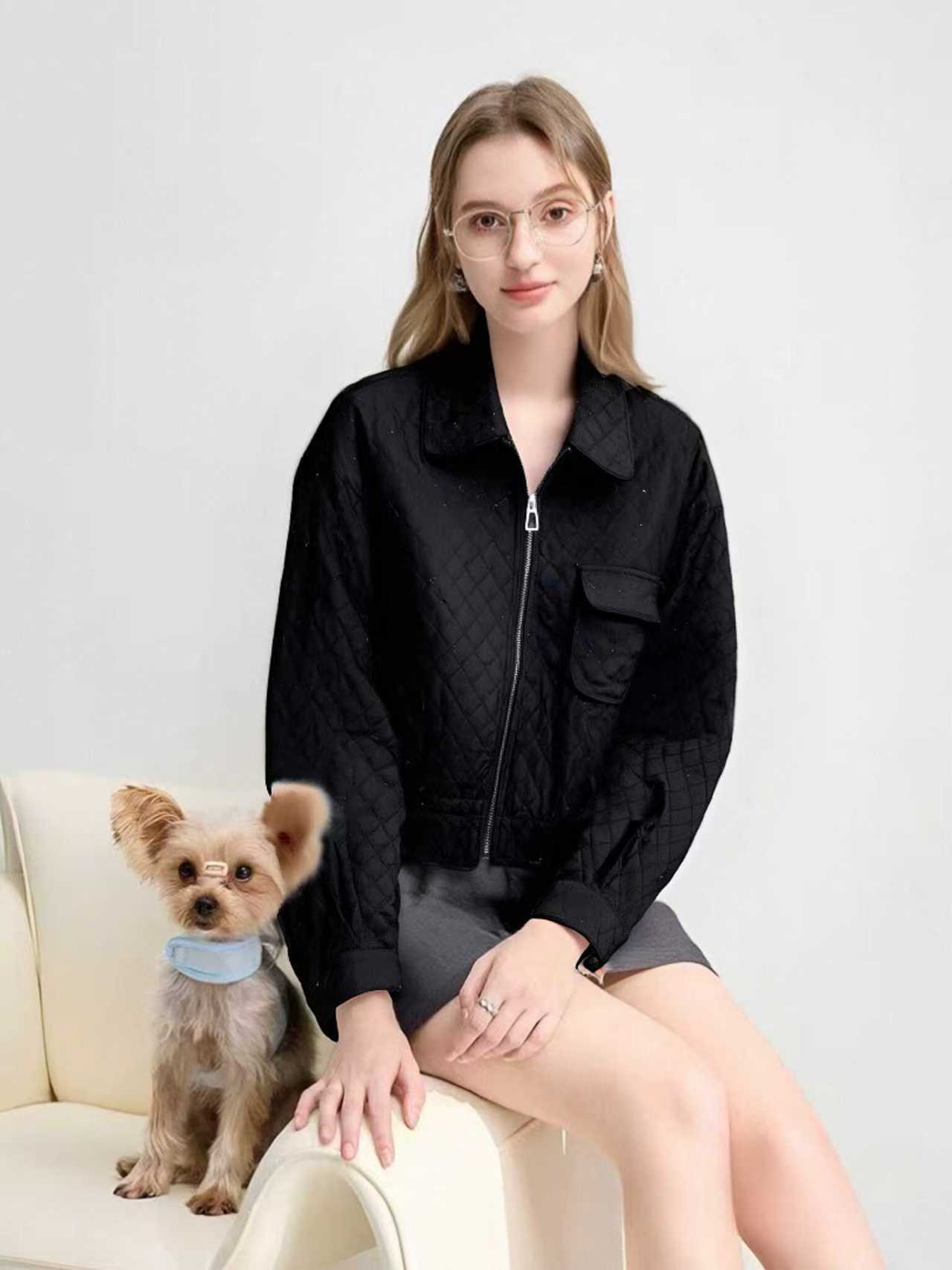 超值促【秋上新】25211菱形格重工绗缝翻领宽松外套-喜出