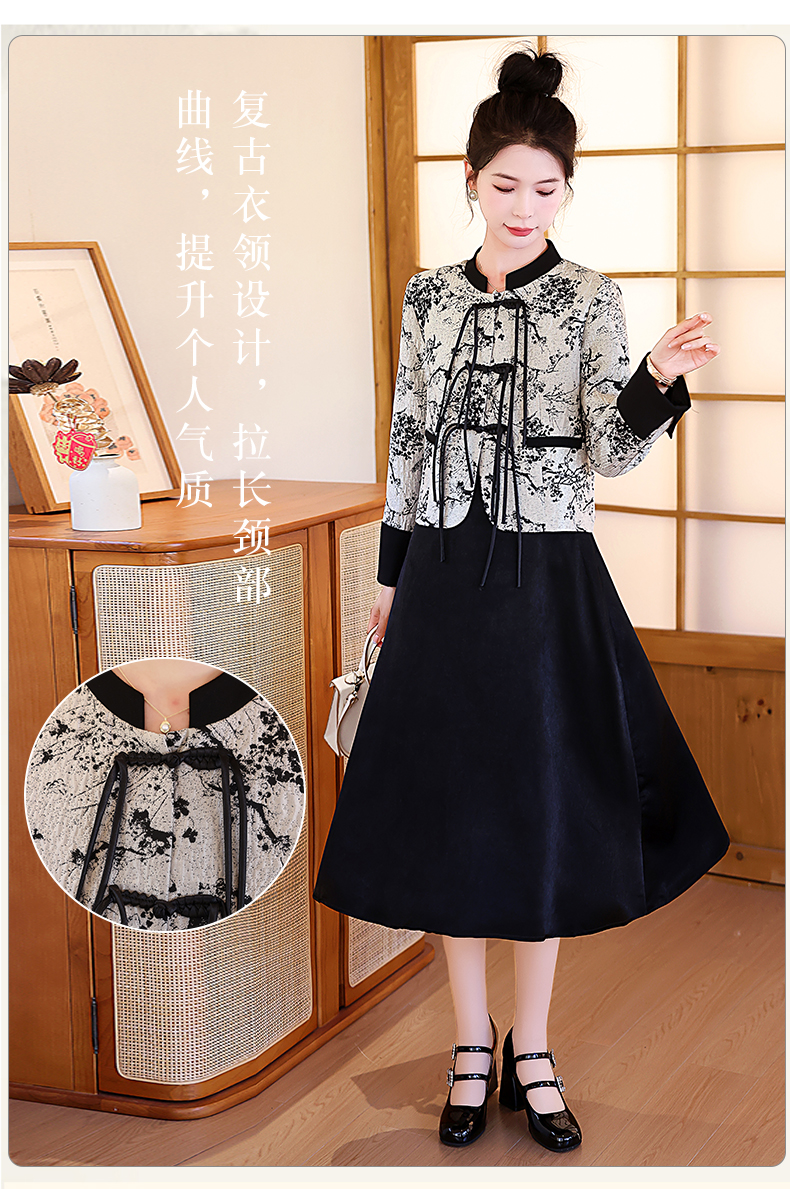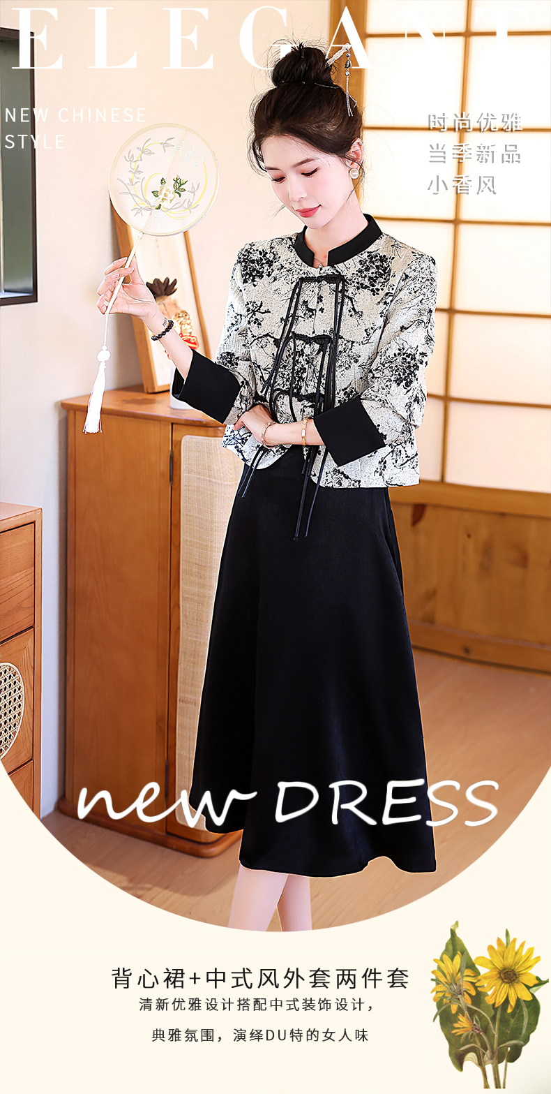 春装新款,新中式套装女高级感穿搭小个子盘扣上衣连衣裙两件套HR-MYL1186