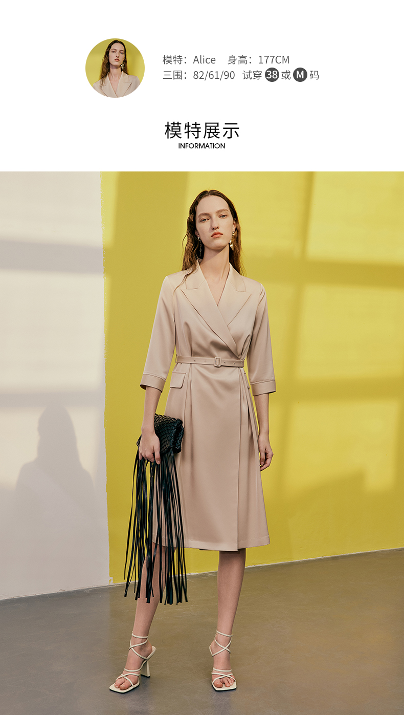 EITIE爱特爱春季新款显瘦通勤百搭时尚收腰西装连衣裙7307028