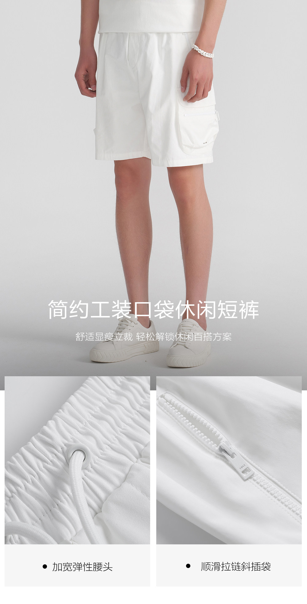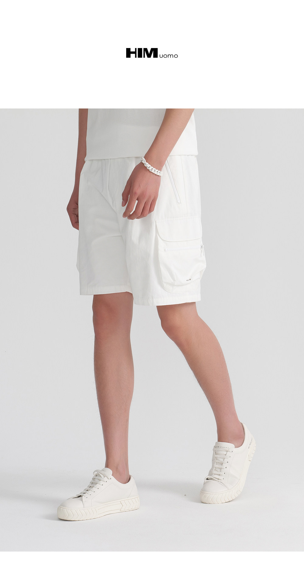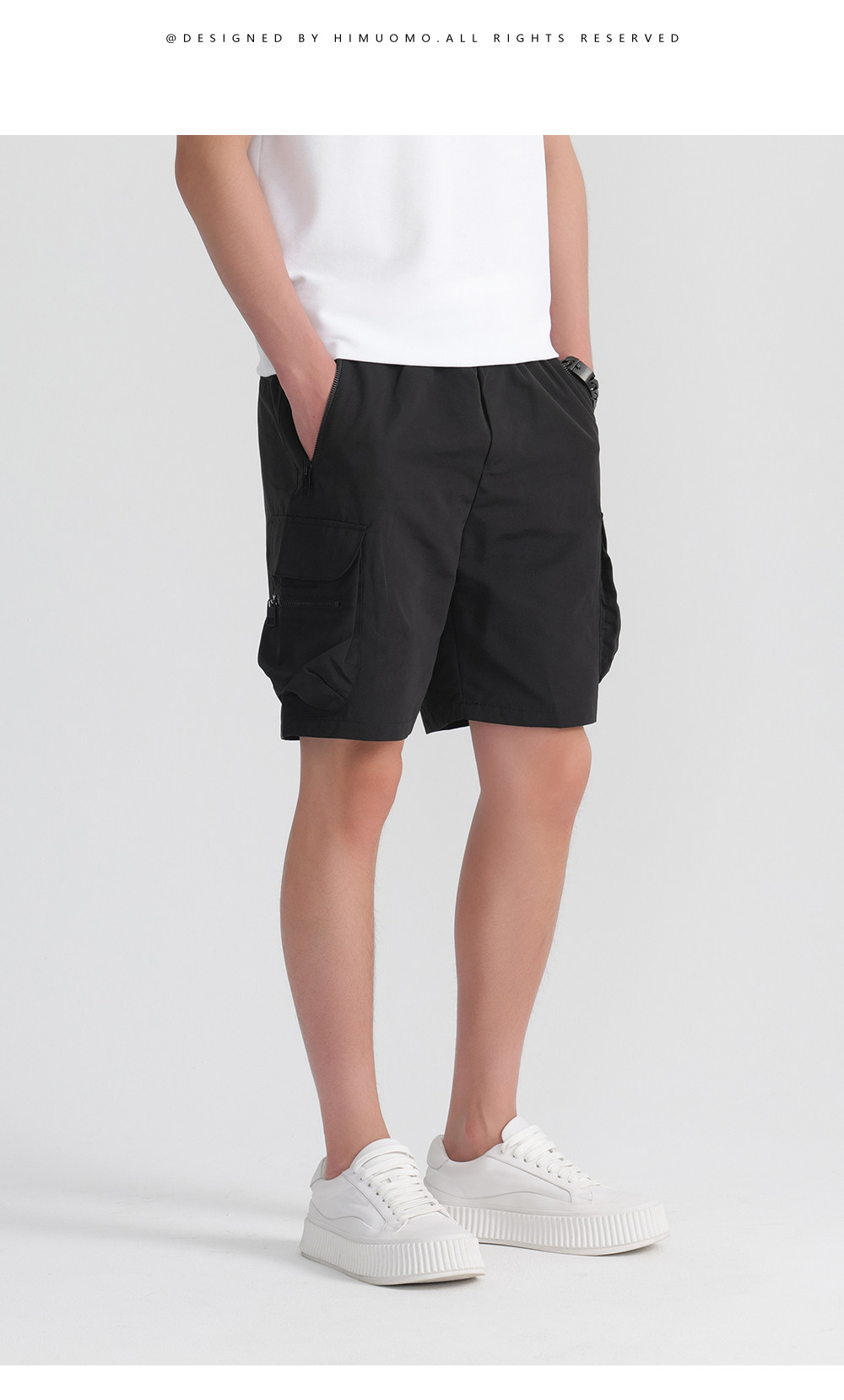 HIM漢崇 休闲工装五分短裤男潮流宽松多袋松紧腰运动裤 2026夏季