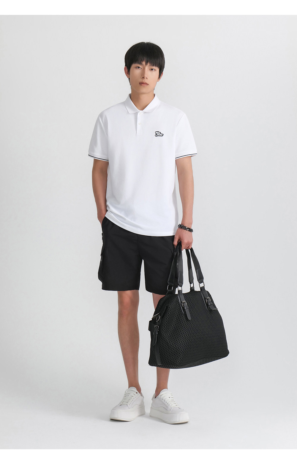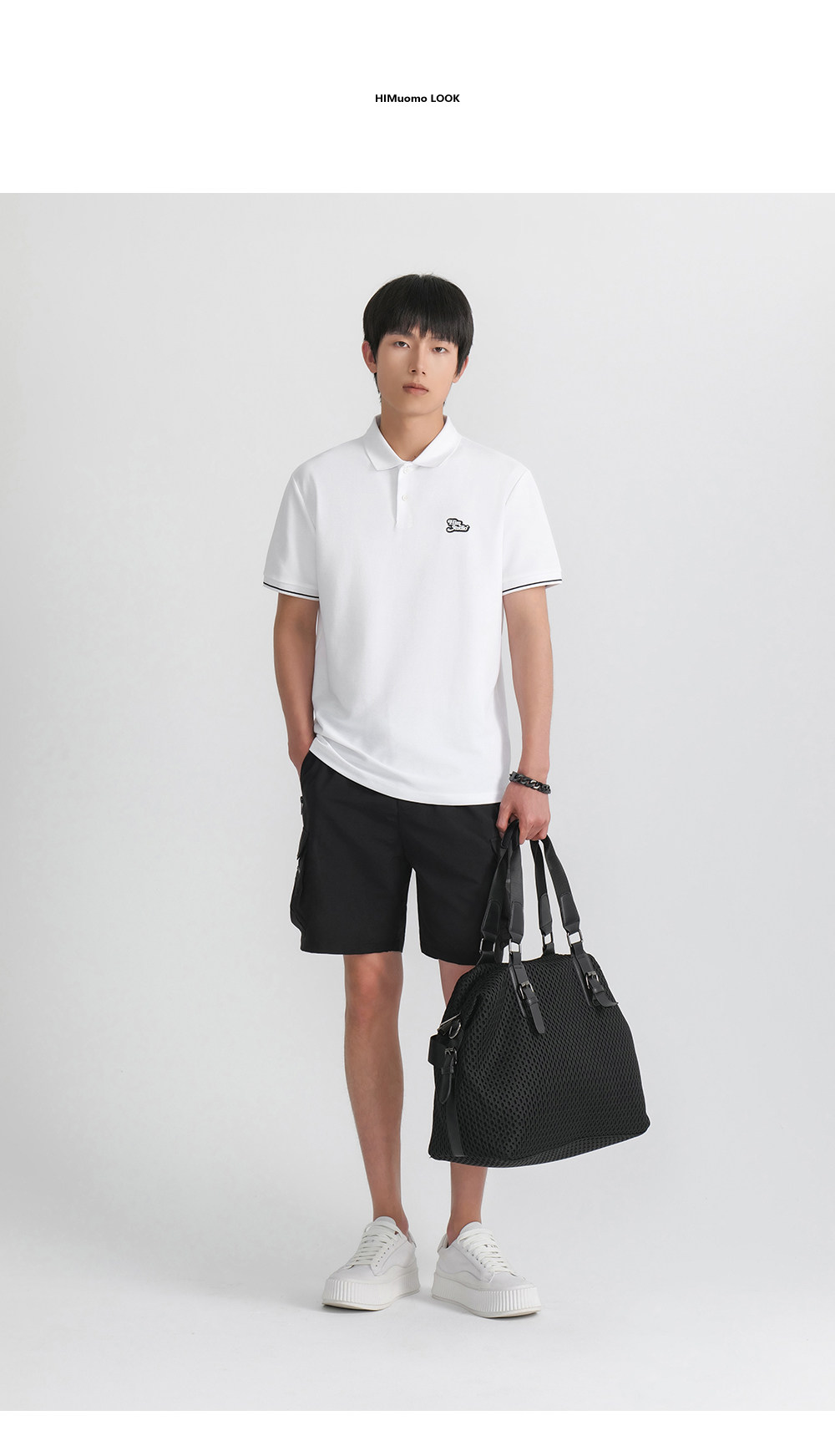 HIM漢崇 舒适微弹日常休闲通勤撞色织唛反领短袖T恤男 2026夏季