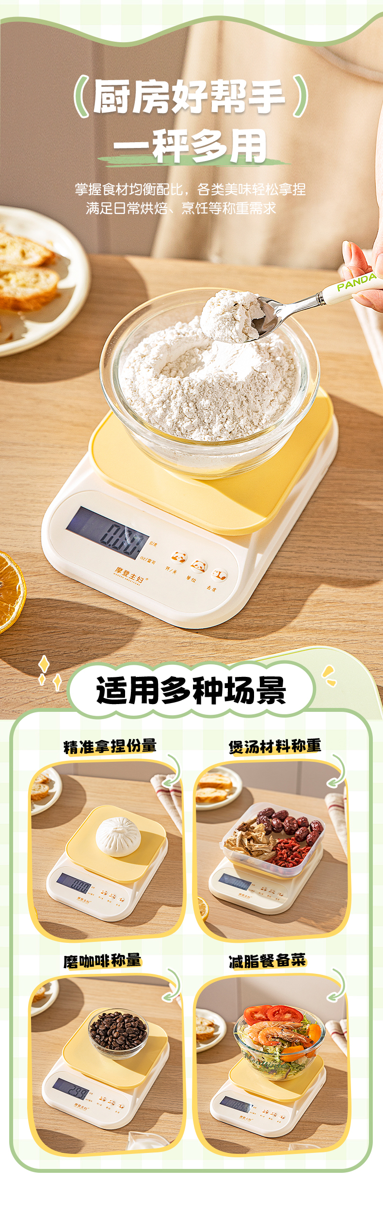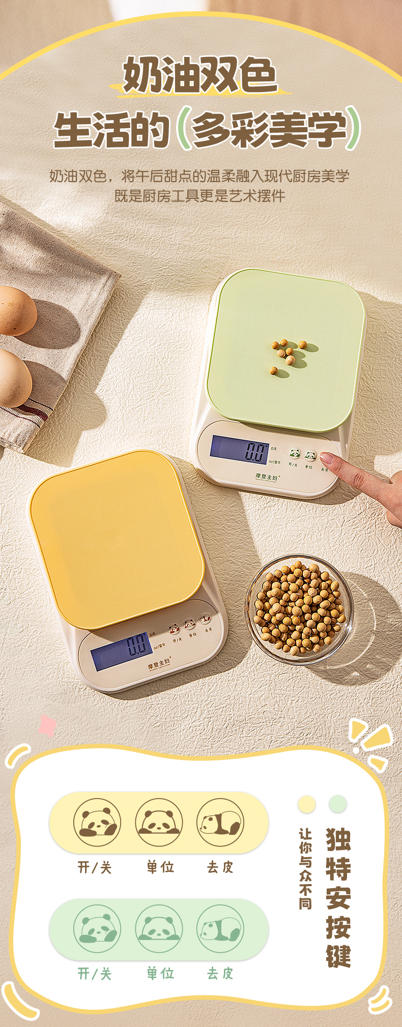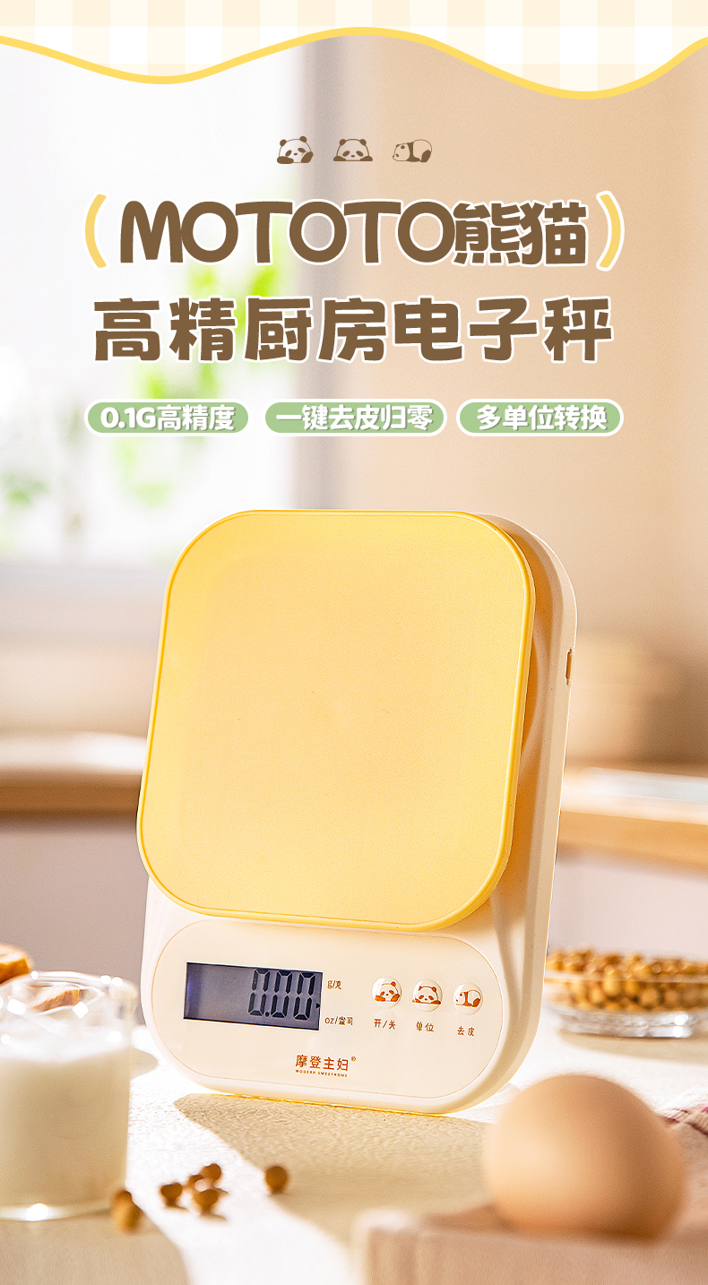 摩登主妇mototo熊猫电子秤精准称克厨房小型烘焙家用高精度食物秤