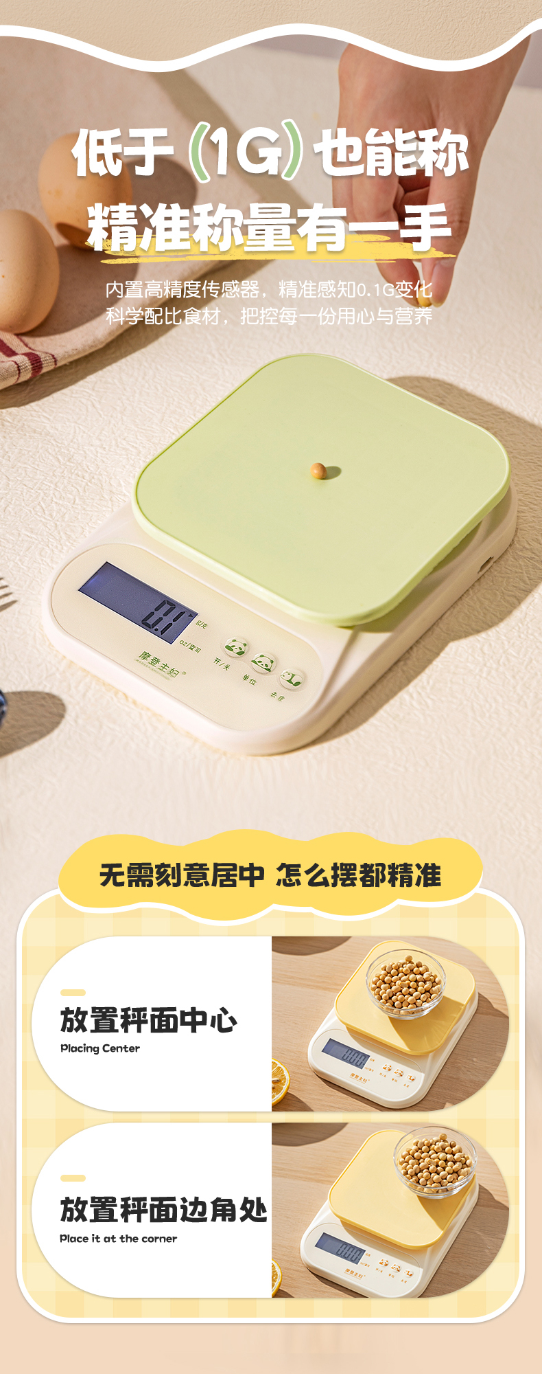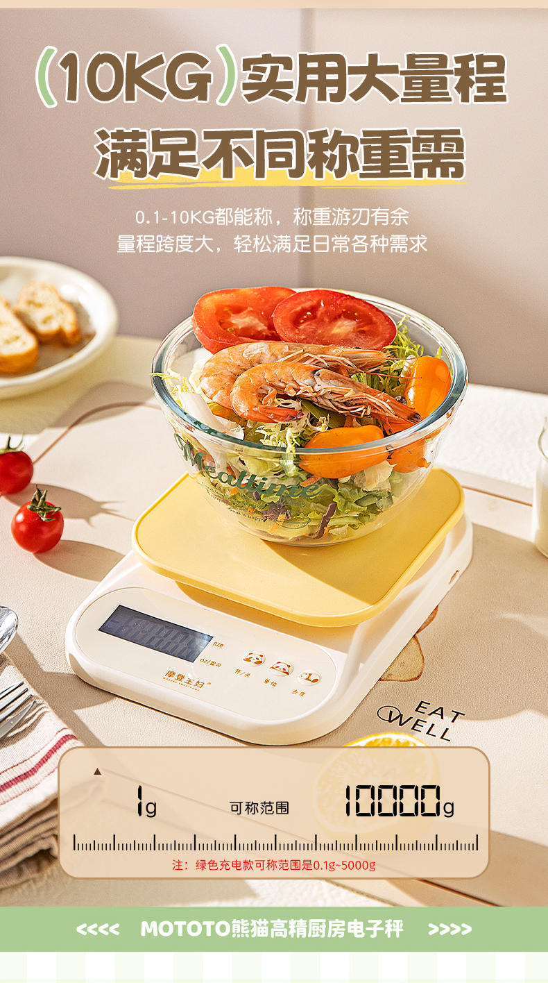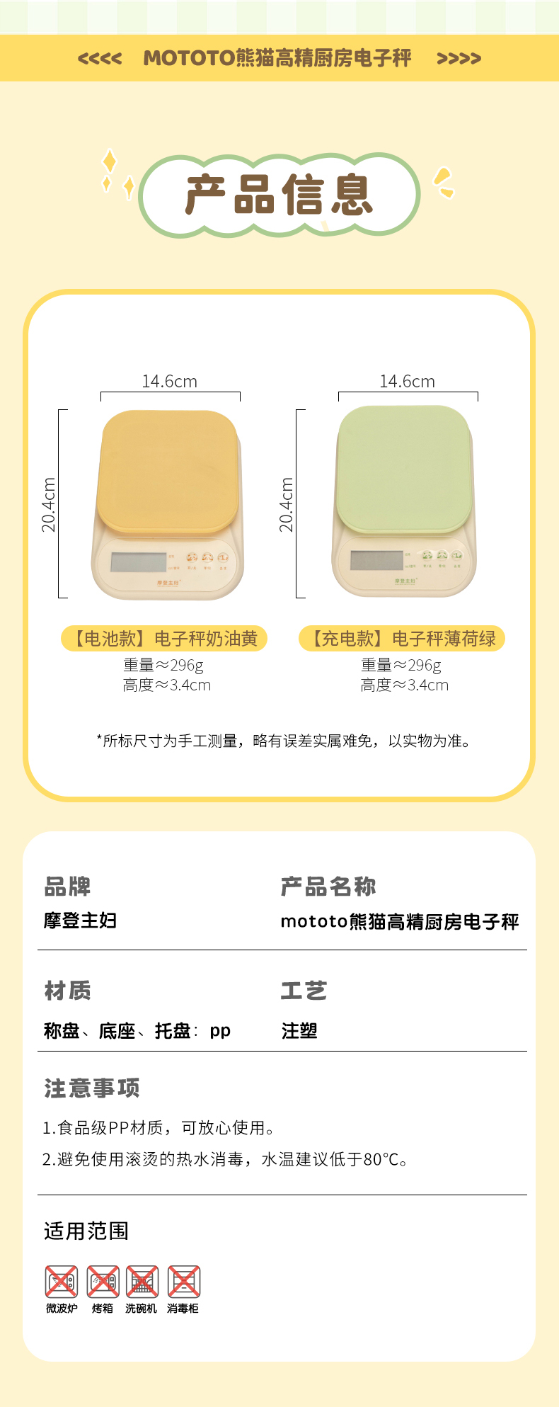 摩登主妇mototo熊猫电子秤精准称克厨房小型烘焙家用高精度食物秤