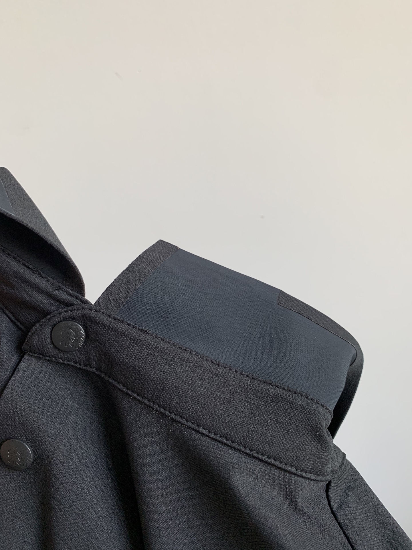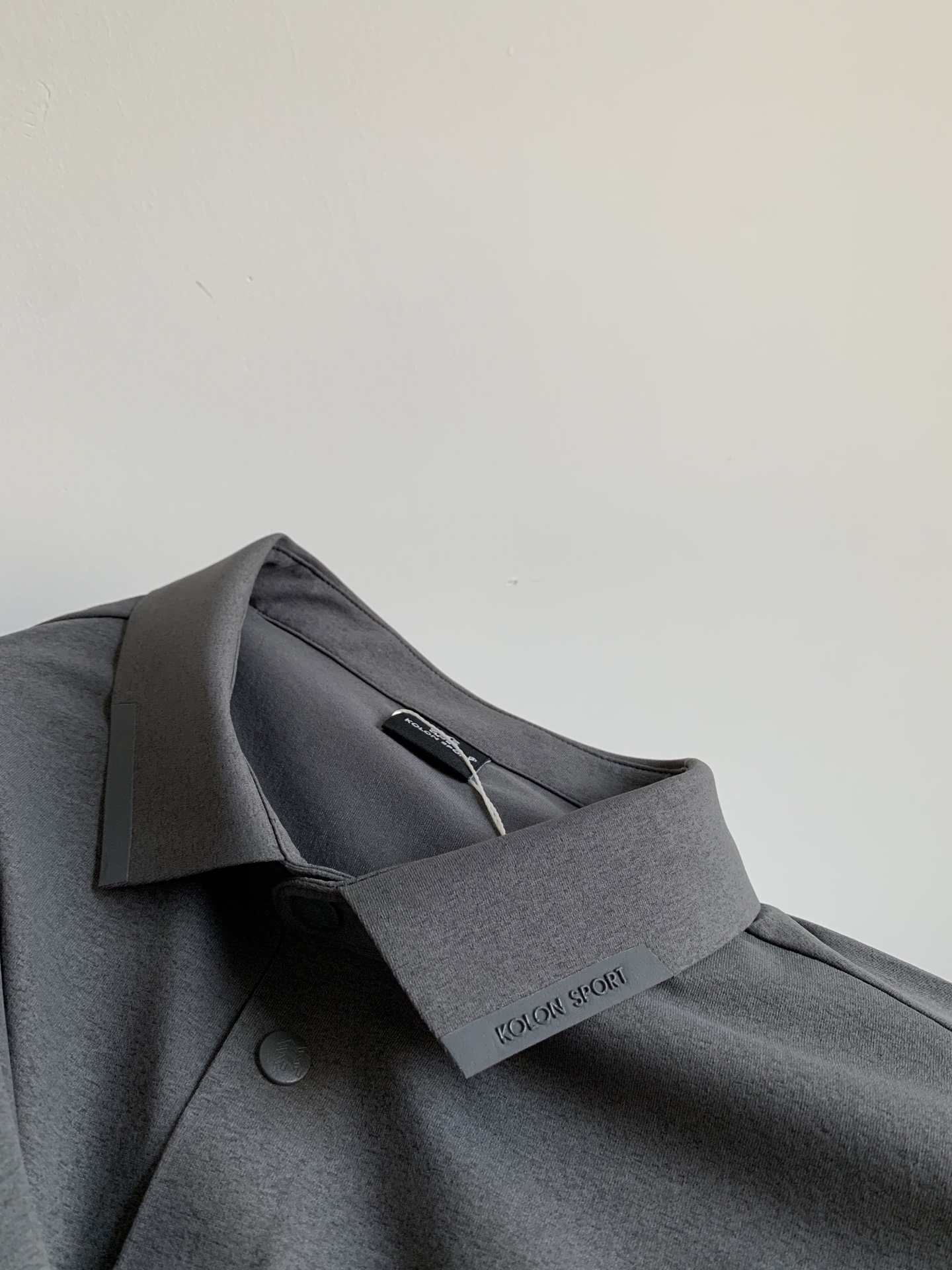 大身采用可隆自研SECO 3.0面料, 有吸湿速干、 及Polygiene抑菌功能门襟采用激光切割工艺,结合肩部超声波贴合工艺,提升细节品质感领口、门襟及下摆均采用热压工艺,外观平整
