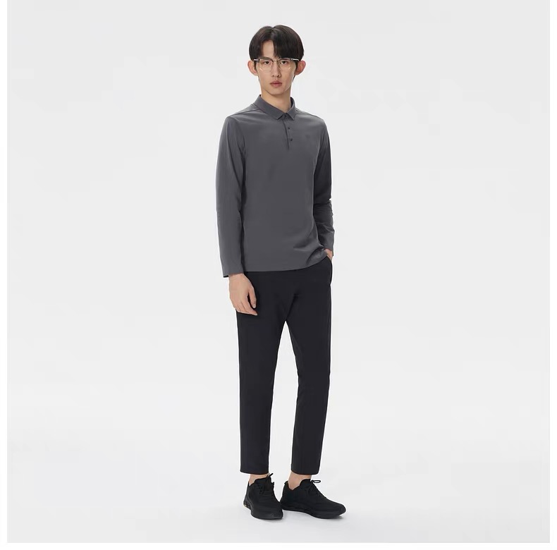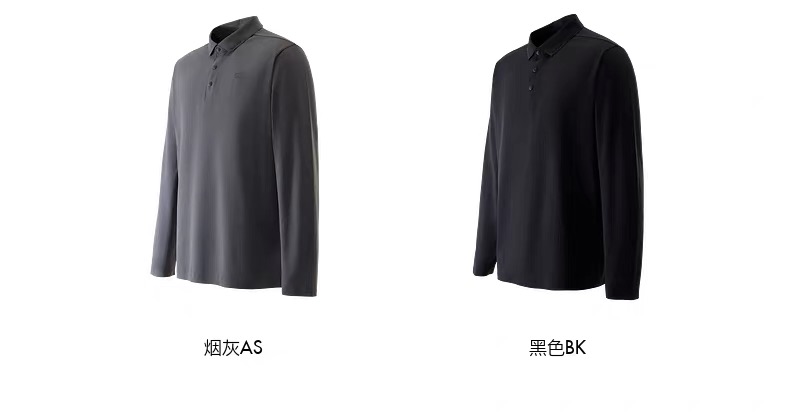 经典翻领设计,领口处印有品牌LOGO,结合热压工艺,外观平整有质感