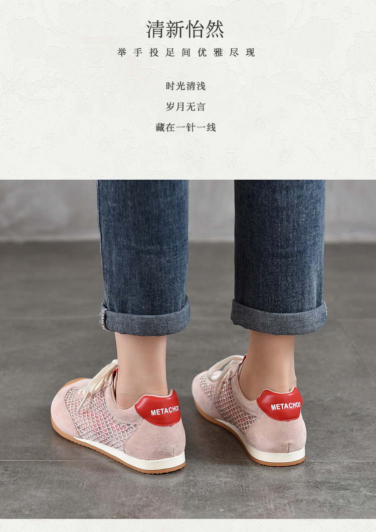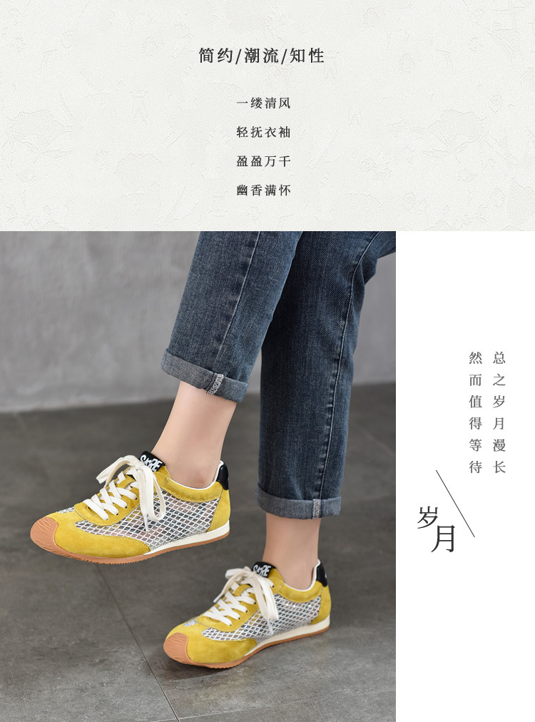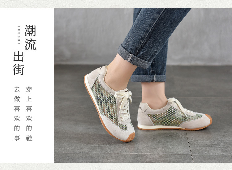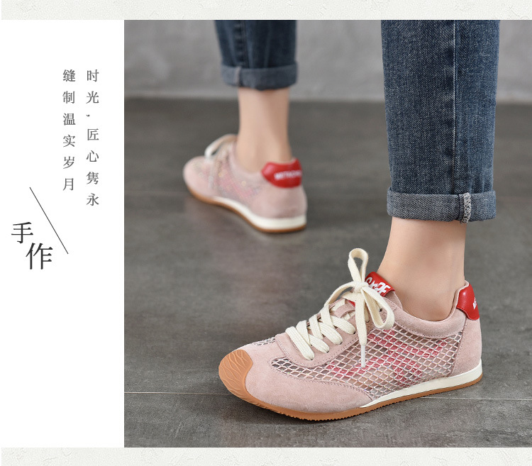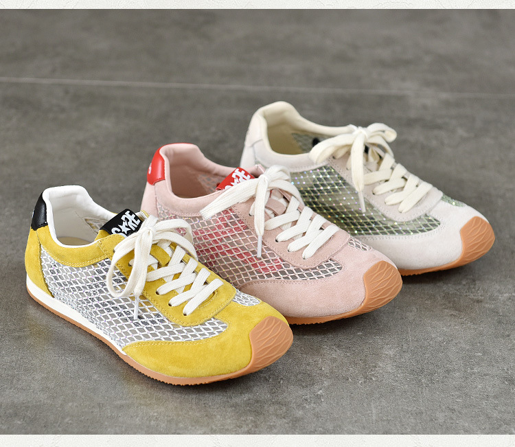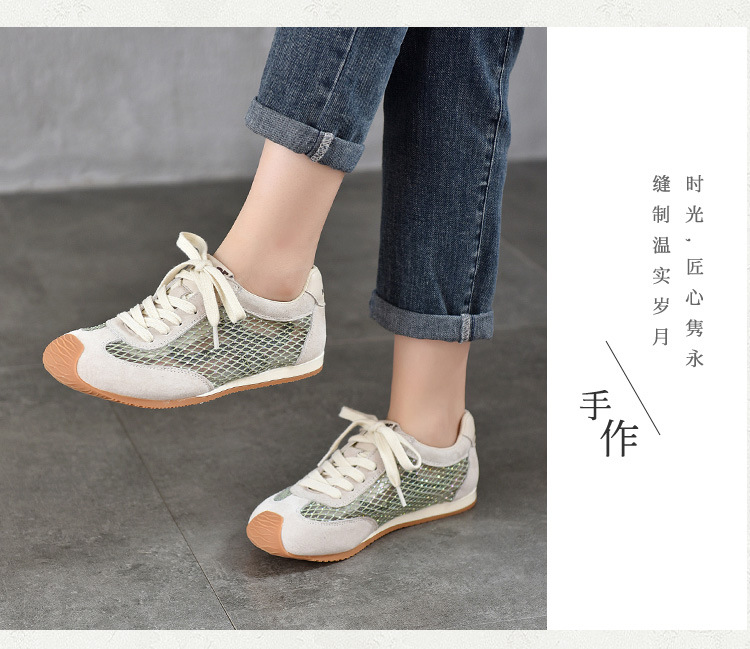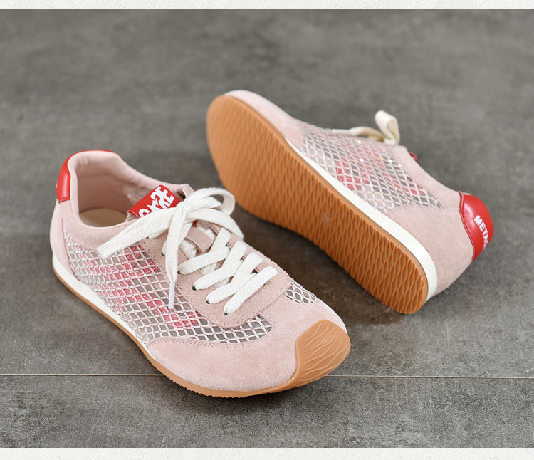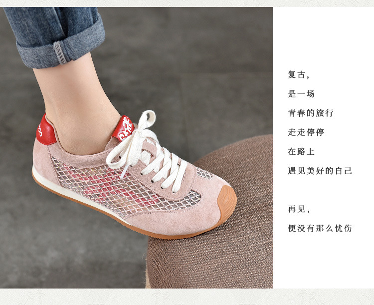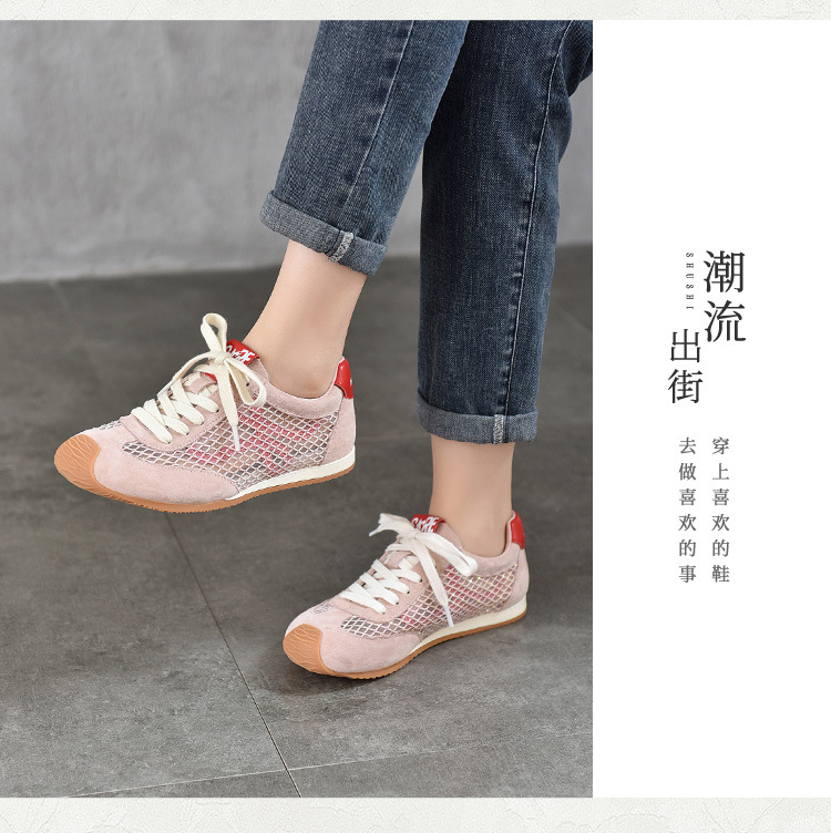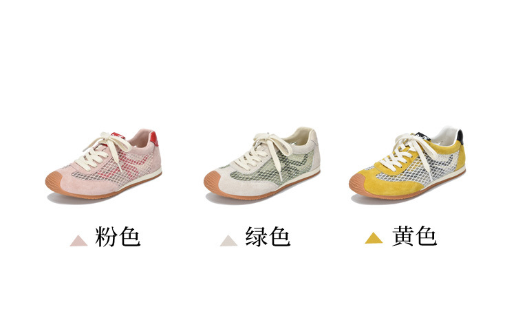 TN T6733-59糖果色透气网面系带休闲鞋真皮软底阿甘鞋运动风网鞋