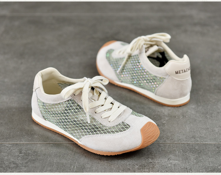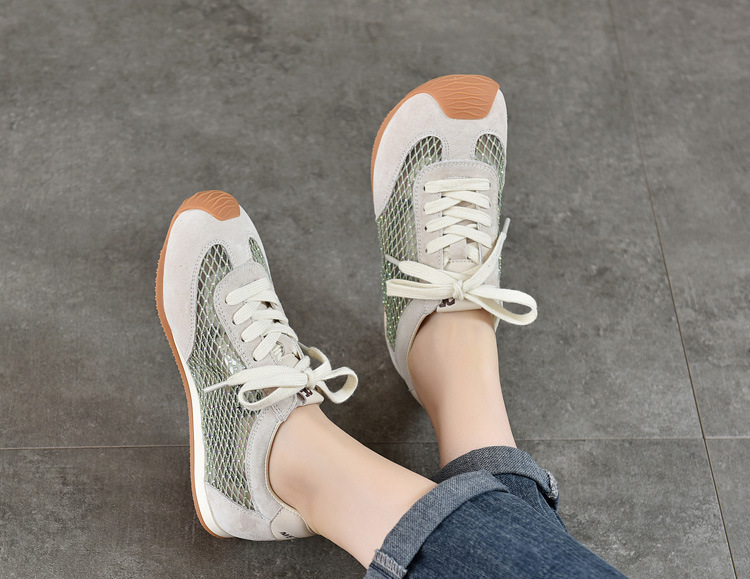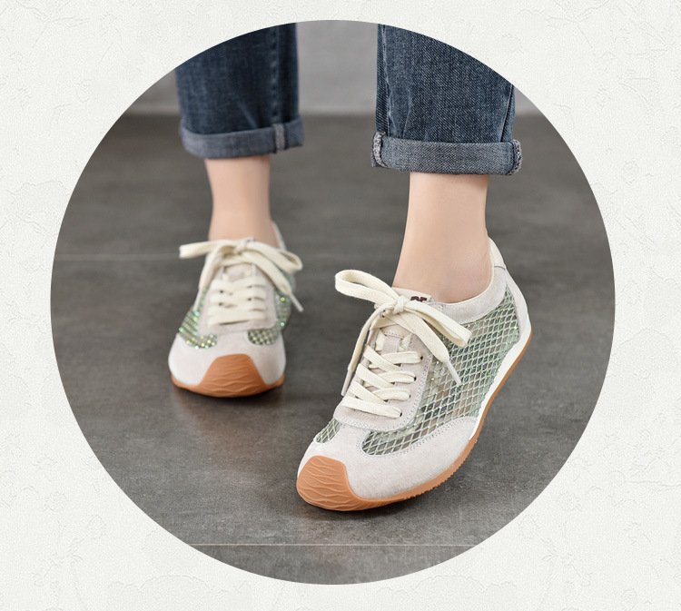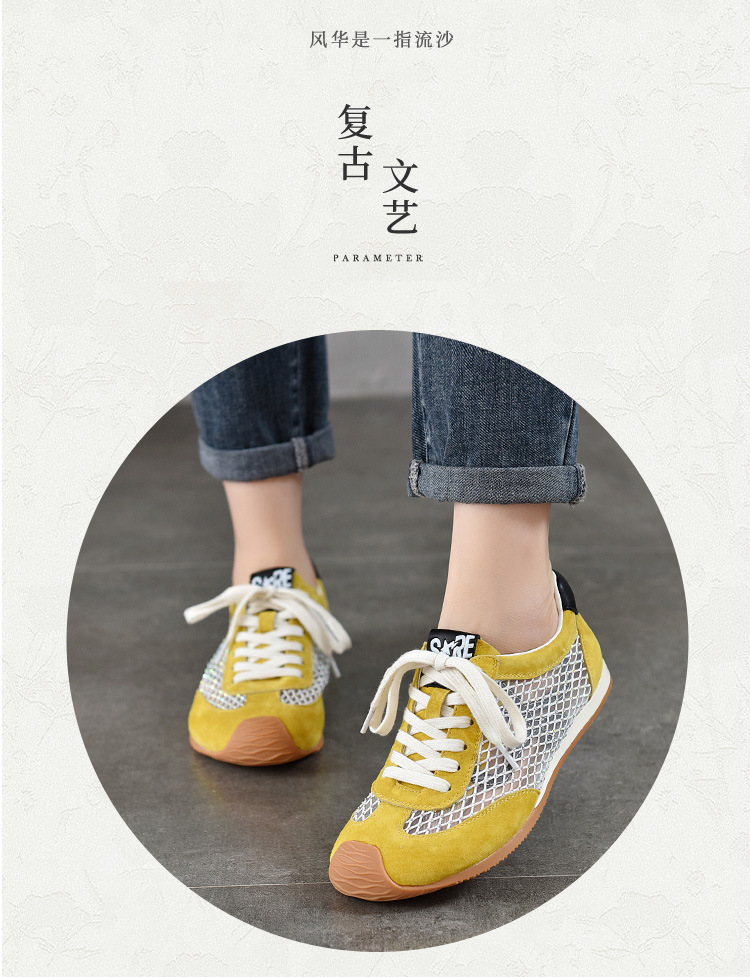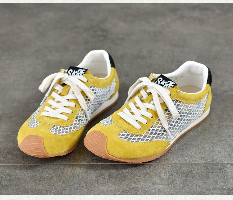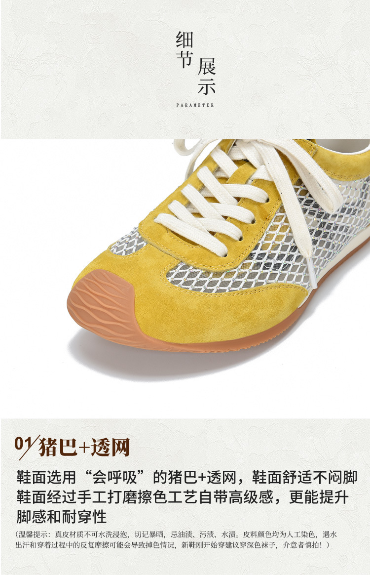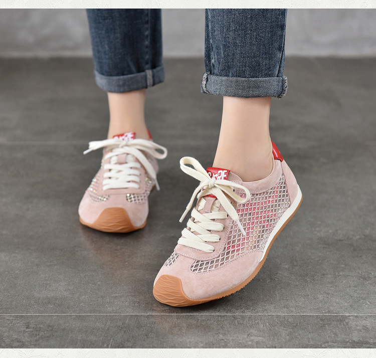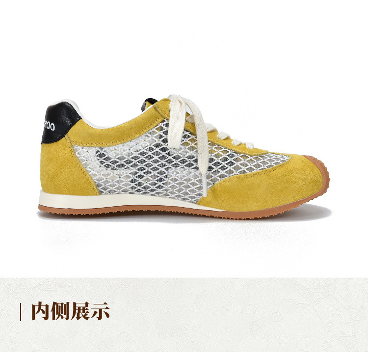 TN T6733-59糖果色透气网面系带休闲鞋真皮软底阿甘鞋运动风网鞋